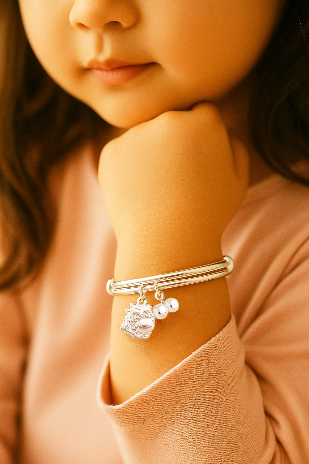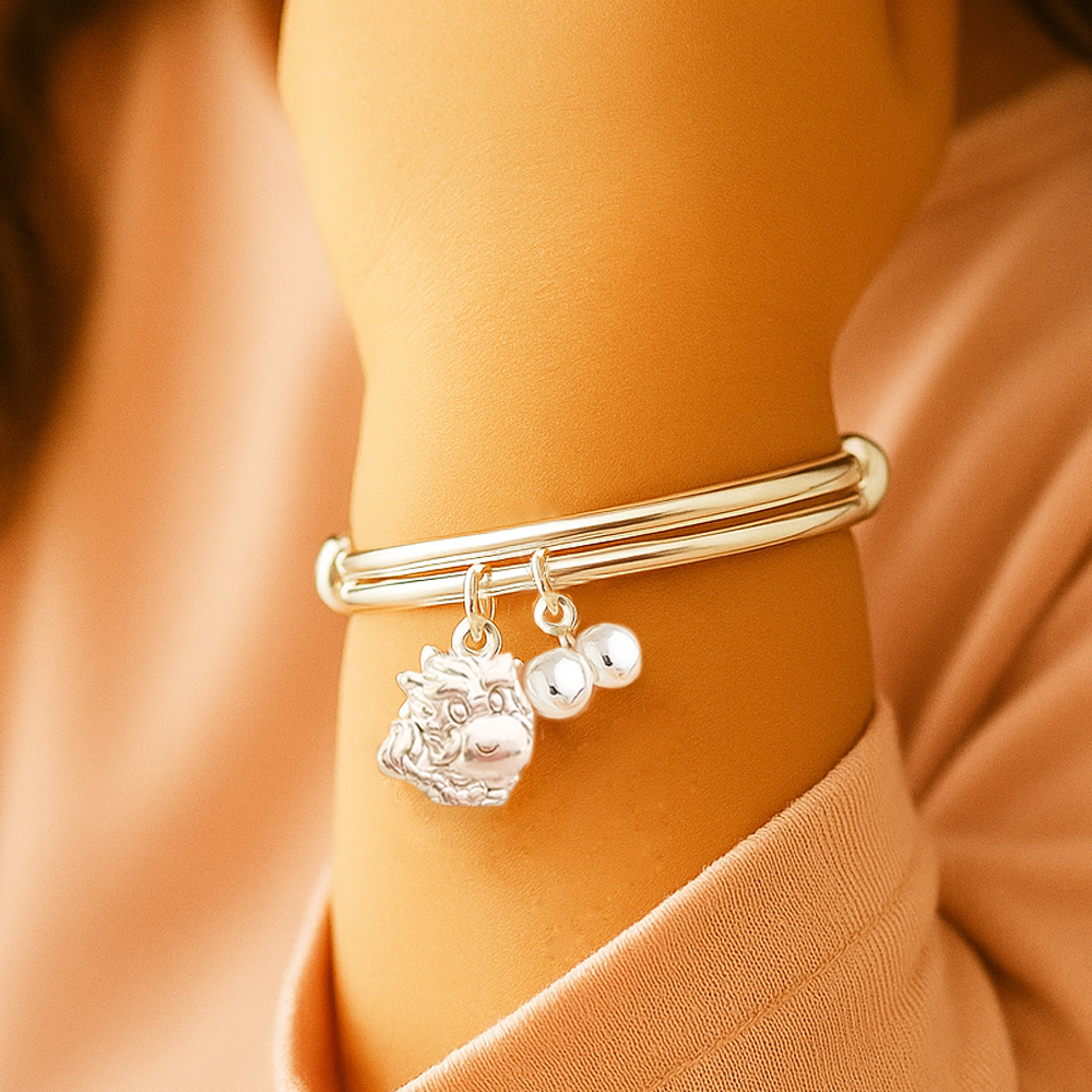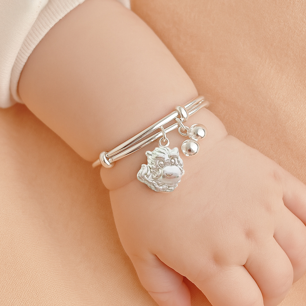 「佩戴生肖龍純銀手鐲,讓龍的力量護佑你,帶來勇氣、智慧與成功,歲歲平安,好運常伴!」