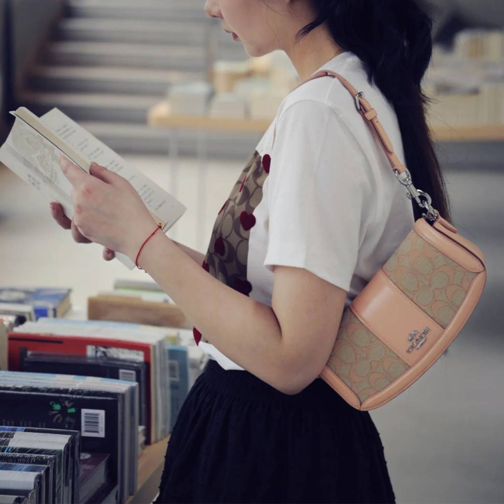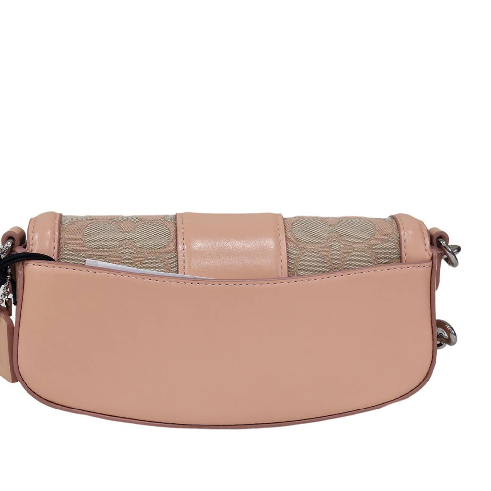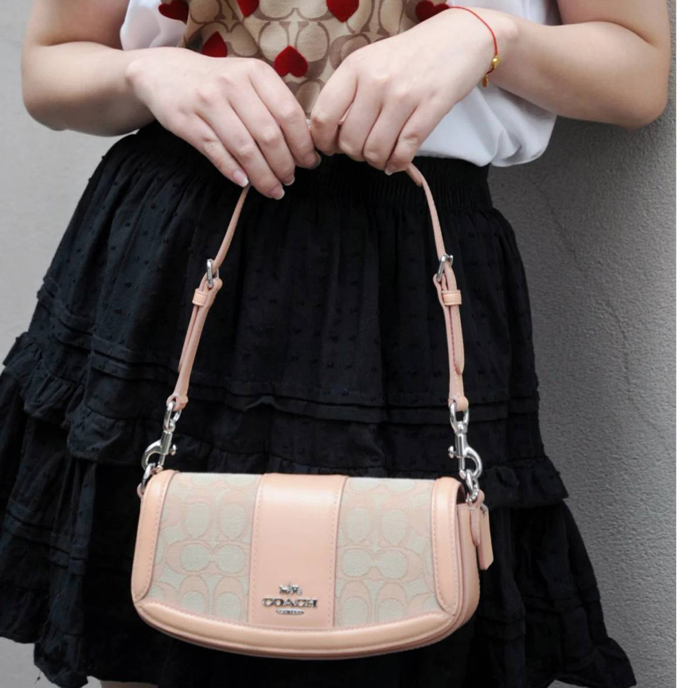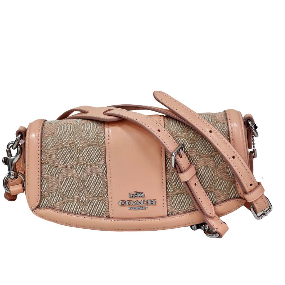 【COACH】ANDREA 經典Logo緹花l單肩手袋小號(蜜桃粉色/贈原廠防塵袋紙袋七夕情人節)