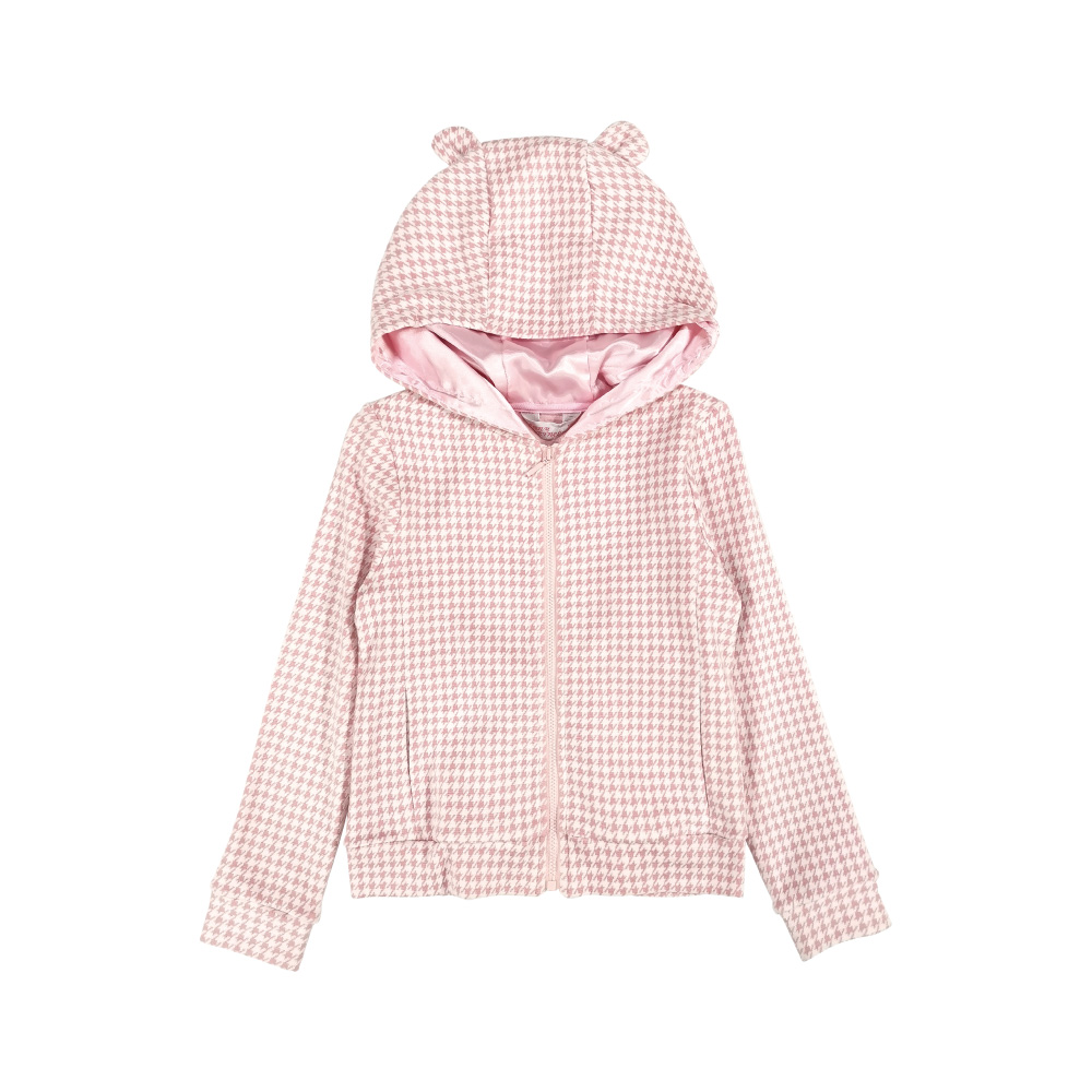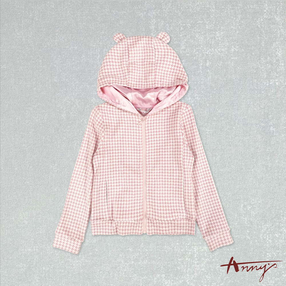 【ANNY’S 安妮公主】童裝 千鳥格紋耳朵造型秋冬款連帽外套(2296粉紅)