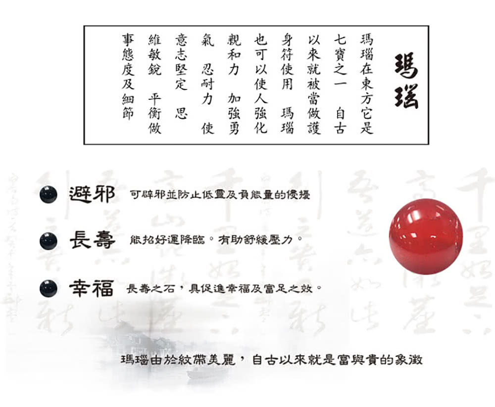 自古以來學者把瑪瑙視?寶石中的"第三眼",象征友善的愛心,有助於消除壓力、疲勞、濁氣等負性能量。