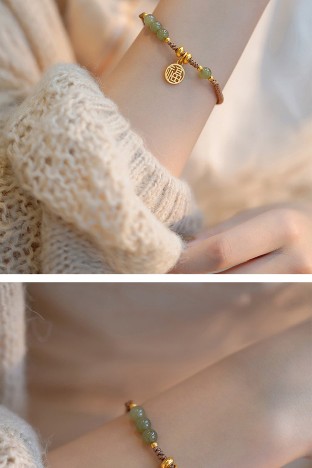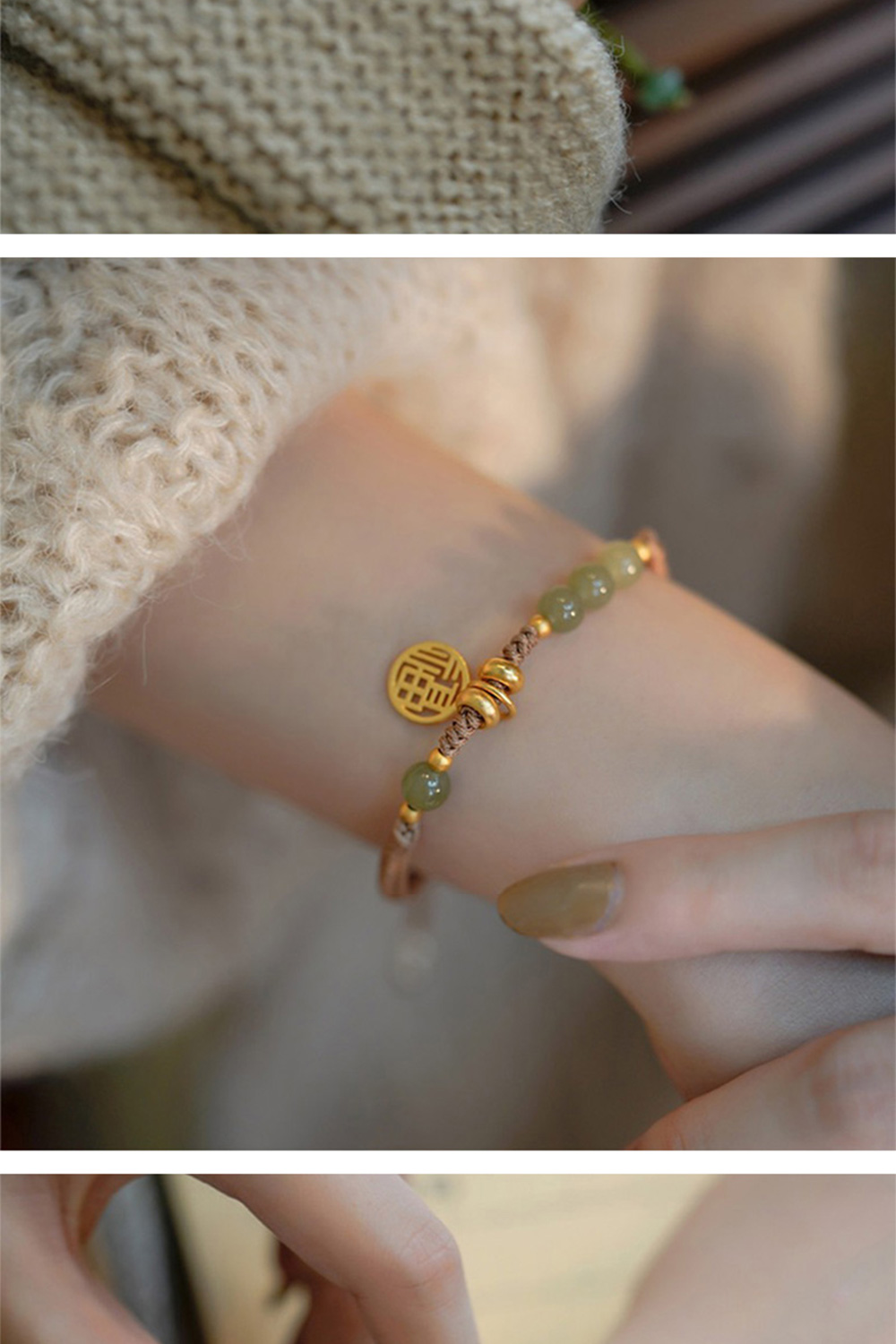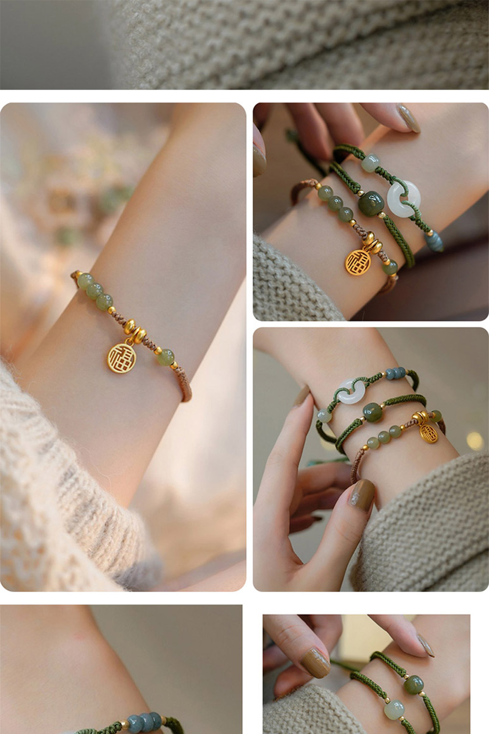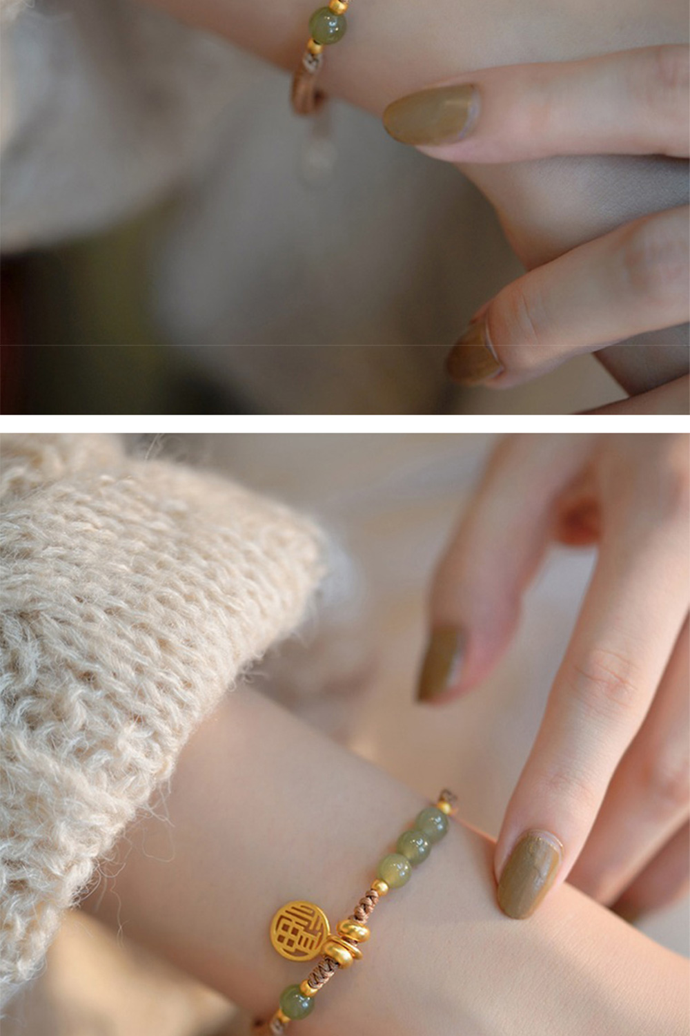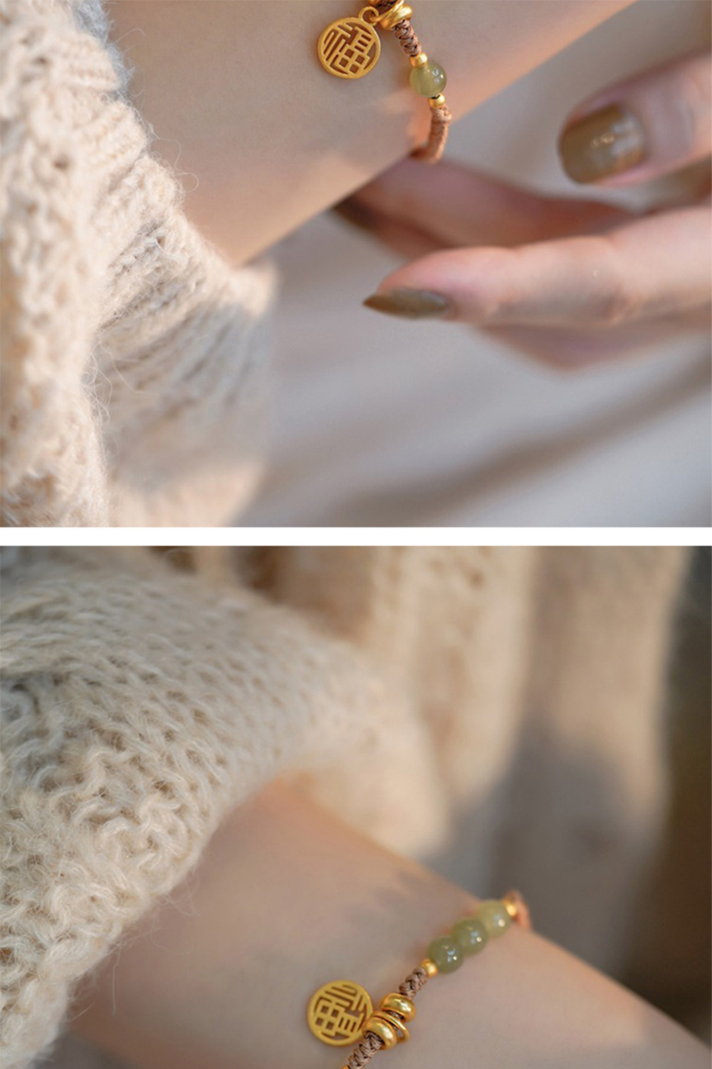 【LEESA】雙11 編織手環\和田玉手鍊\福字吊墜\兒童手鍊\保平安\氣質手鍊\百搭飾品\禮物\手鍊\手