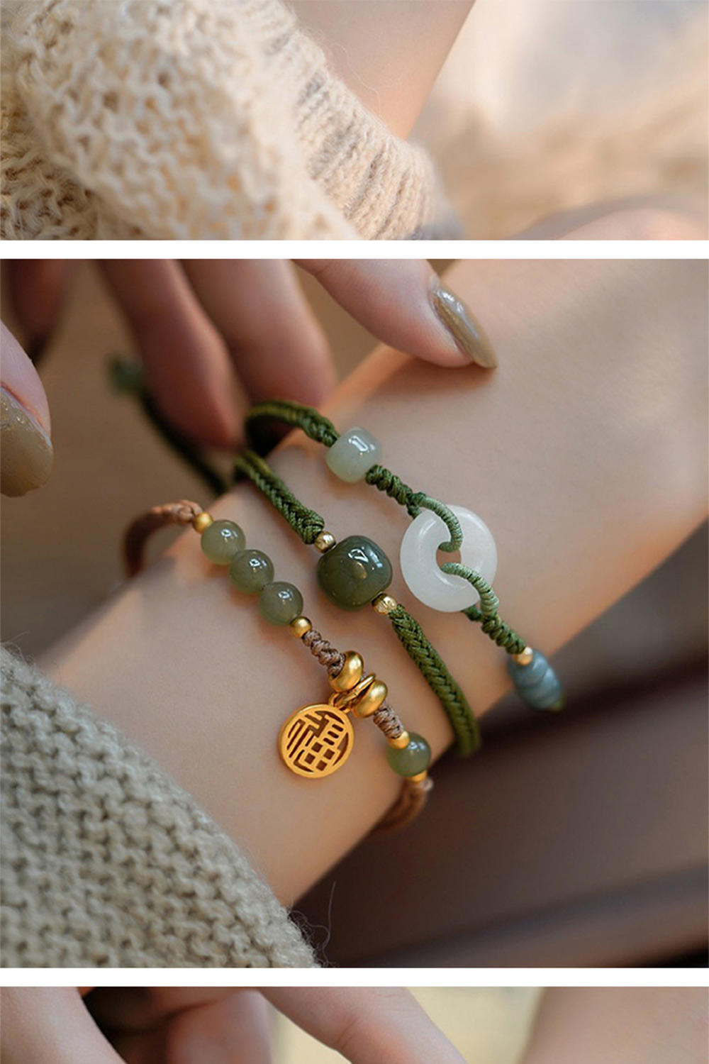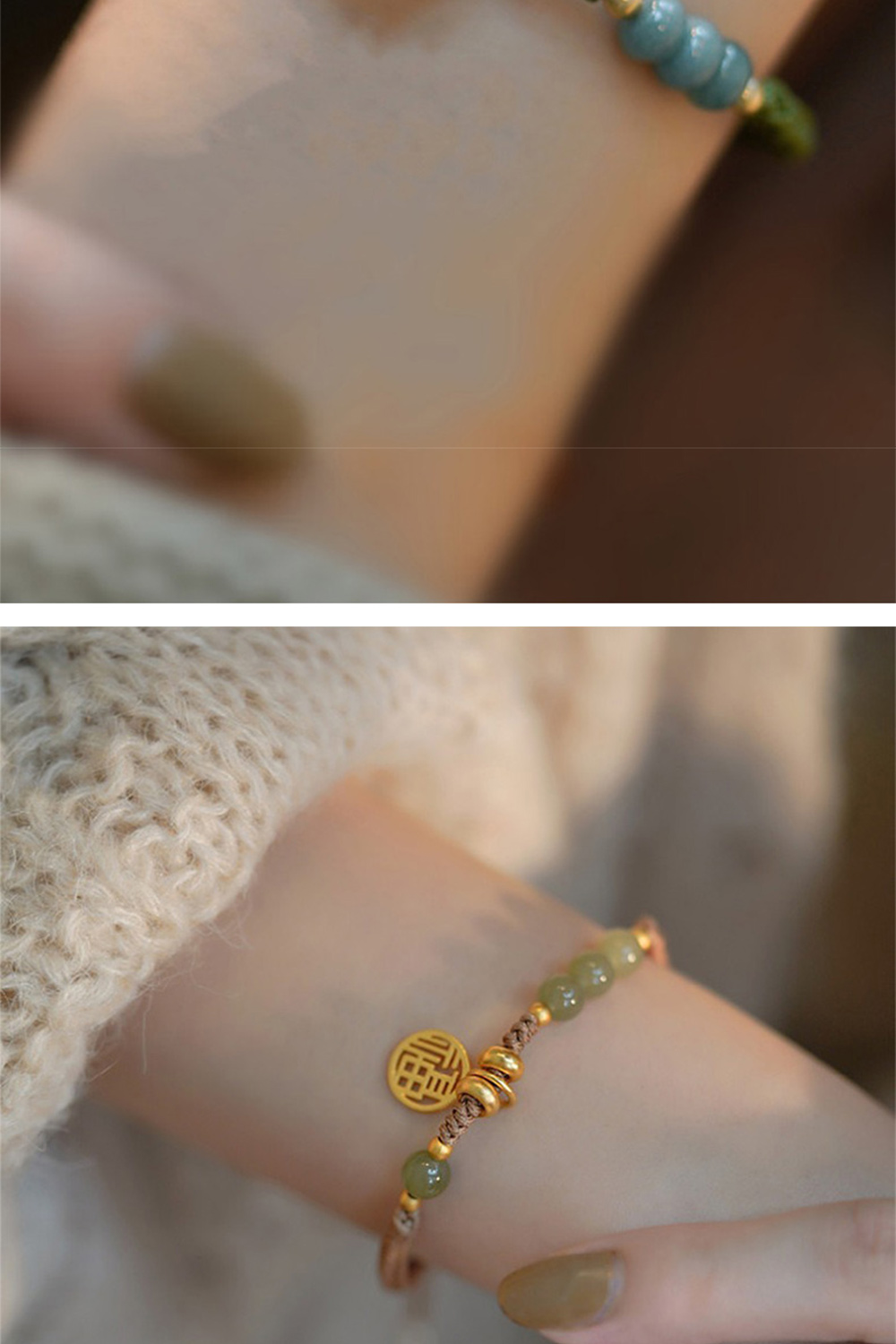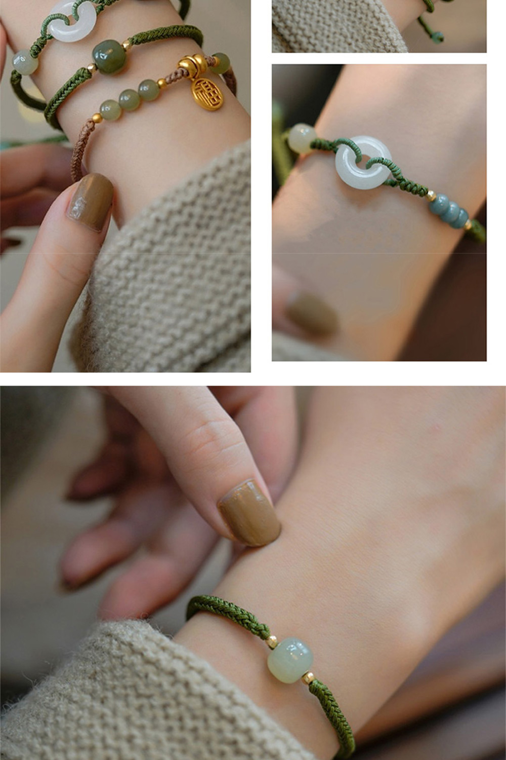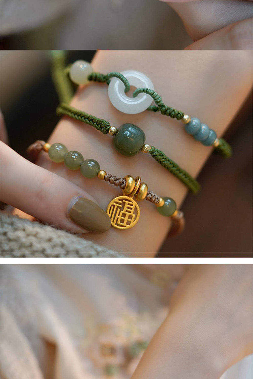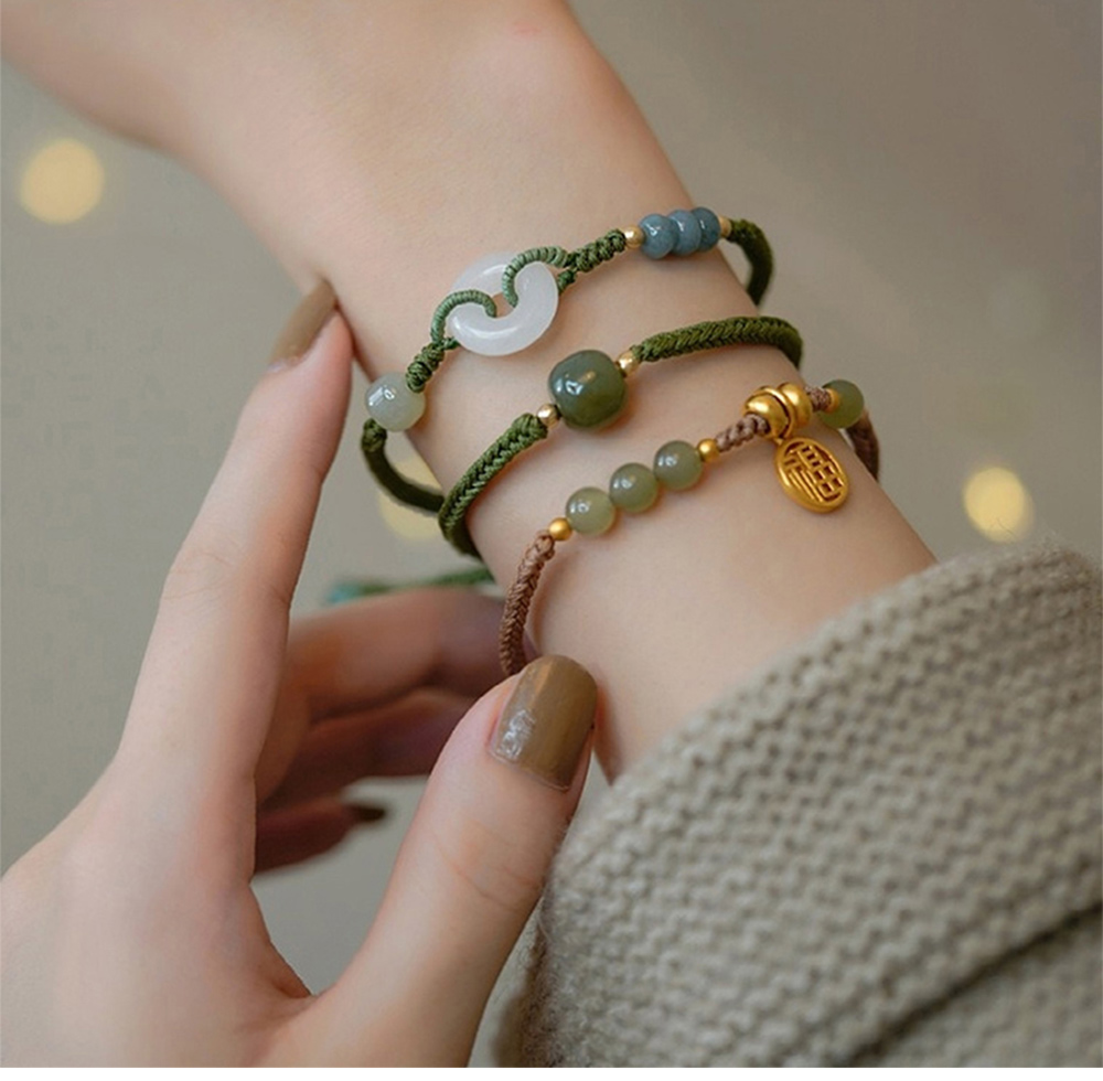 【LEESA】雙11 編織手環\和田玉手鍊\福字吊墜\兒童手鍊\保平安\氣質手鍊\百搭飾品\禮物\手鍊\手