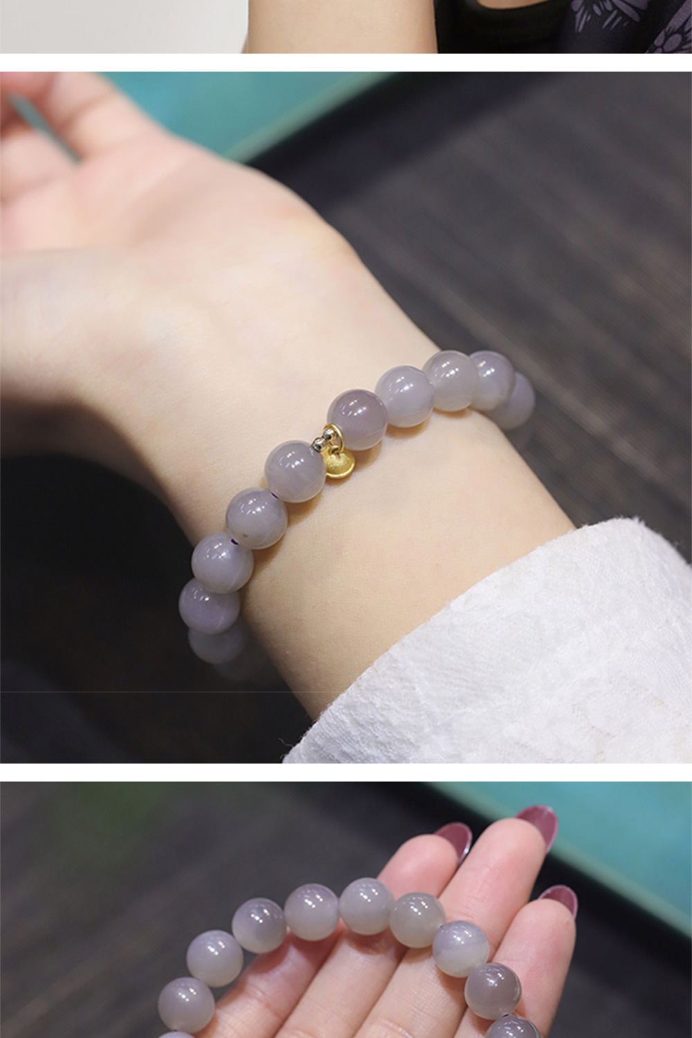 👜 商品尺吋:內圍全長15.5cm可伸縮,玉珠約0.6cm