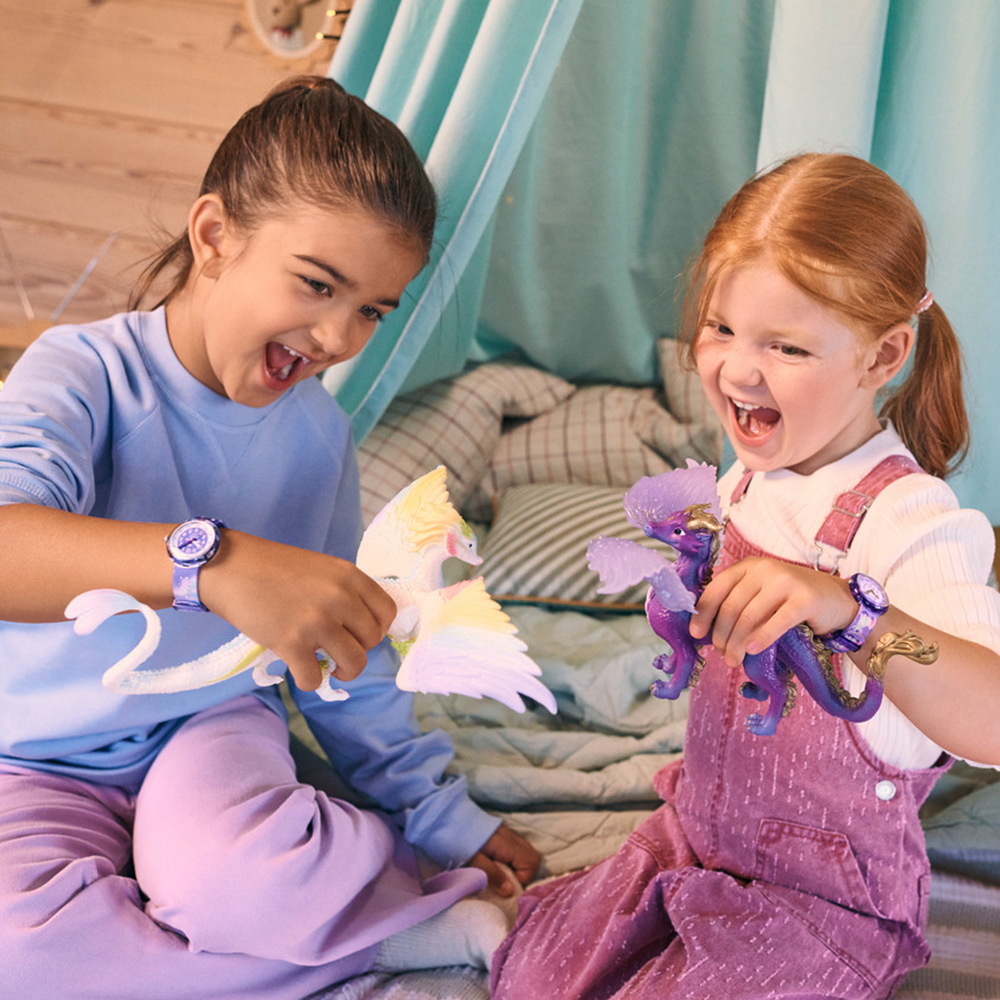 體驗 MYSTIC CLOUDS 的魅力!這款神奇的學習型兒童腕錶採用夢幻般的紫色和藍色雲朵錶帶,錶盤上刻有星星,飾有水晶石。這是完美的兒童禮物,為孩子們帶來有趣而神秘的認時探秘之旅!