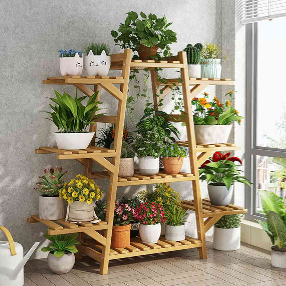 【竹中生智旗艦店】A字原色 7層 帶輪(花架 置物架 花盆架 盆栽架 植物架子 預購15天)