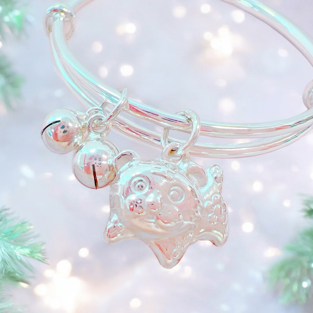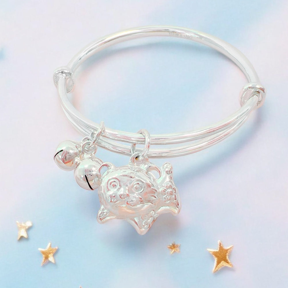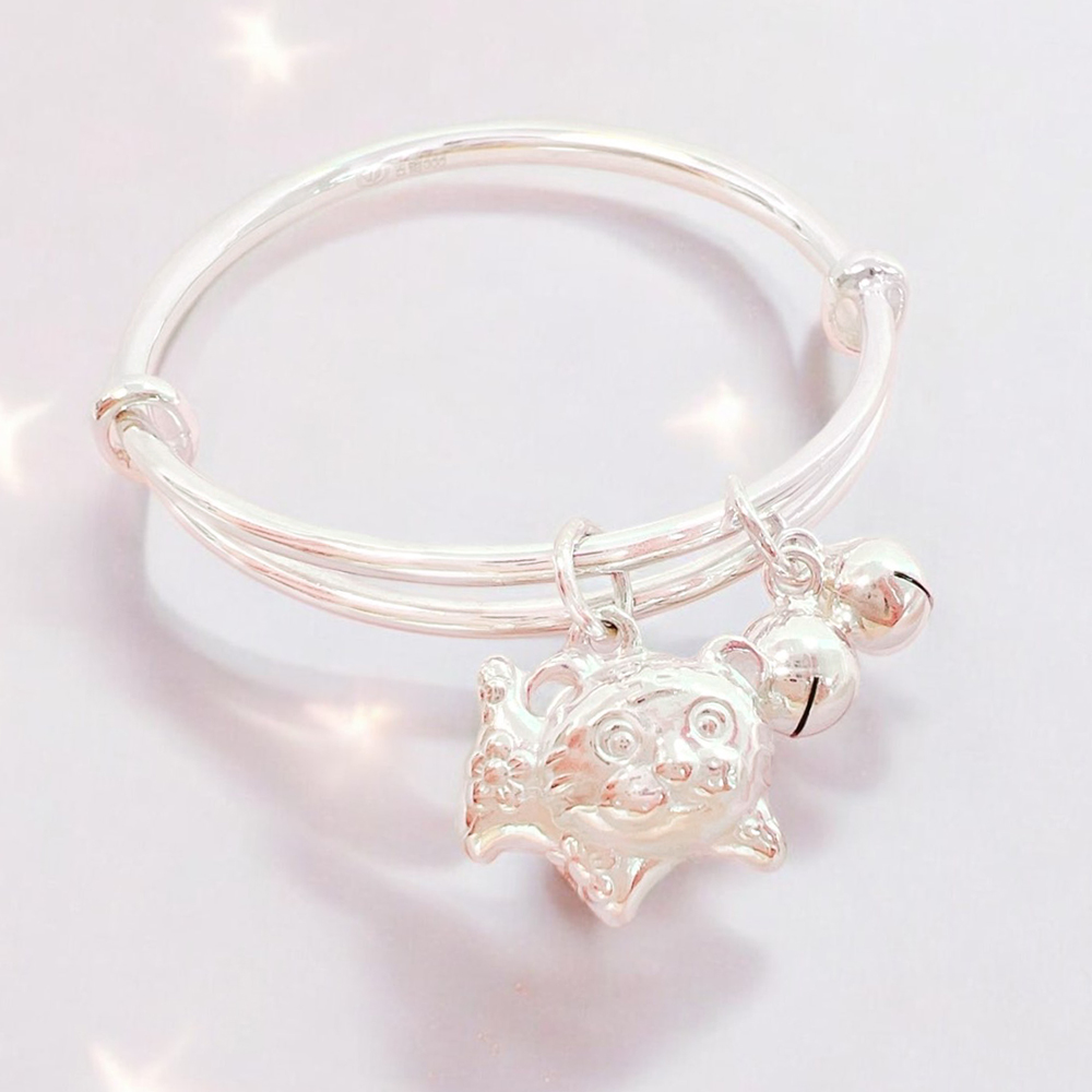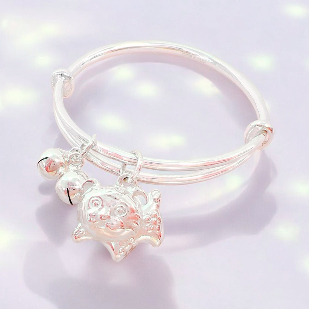 【珠兒綠】999純銀 生肖虎撒嬌虎兒童搖鈴手鐲 開 純銀手鐲 純銀手鍊 彌月禮物 兒童禮物(附高級禮盒禮袋)