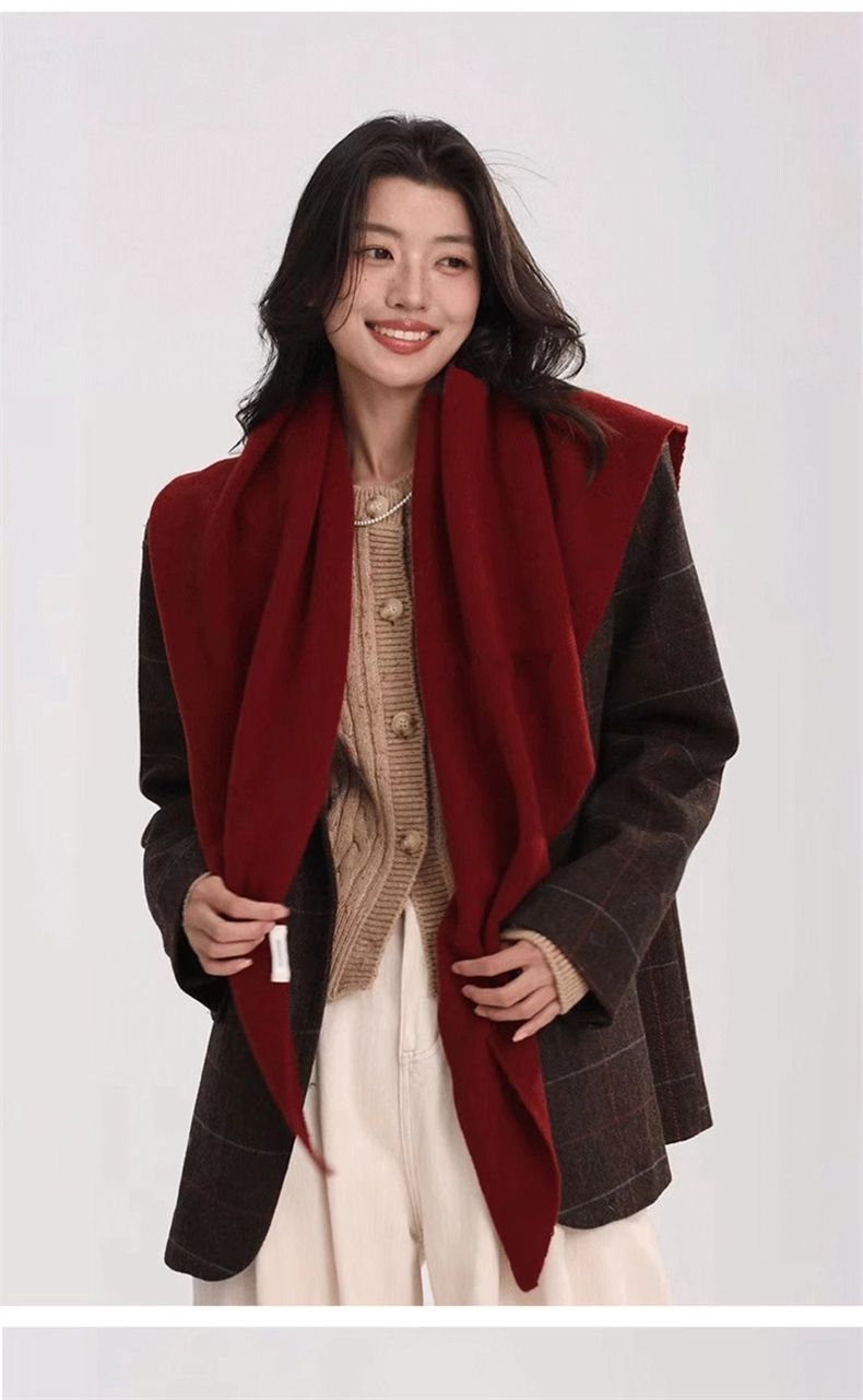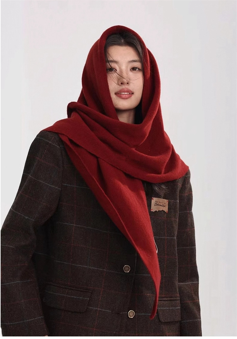 【達賀尊爵】百分百全羊毛安哥拉紅三角圍巾護頸保暖大披肩秋冬新(多色)
