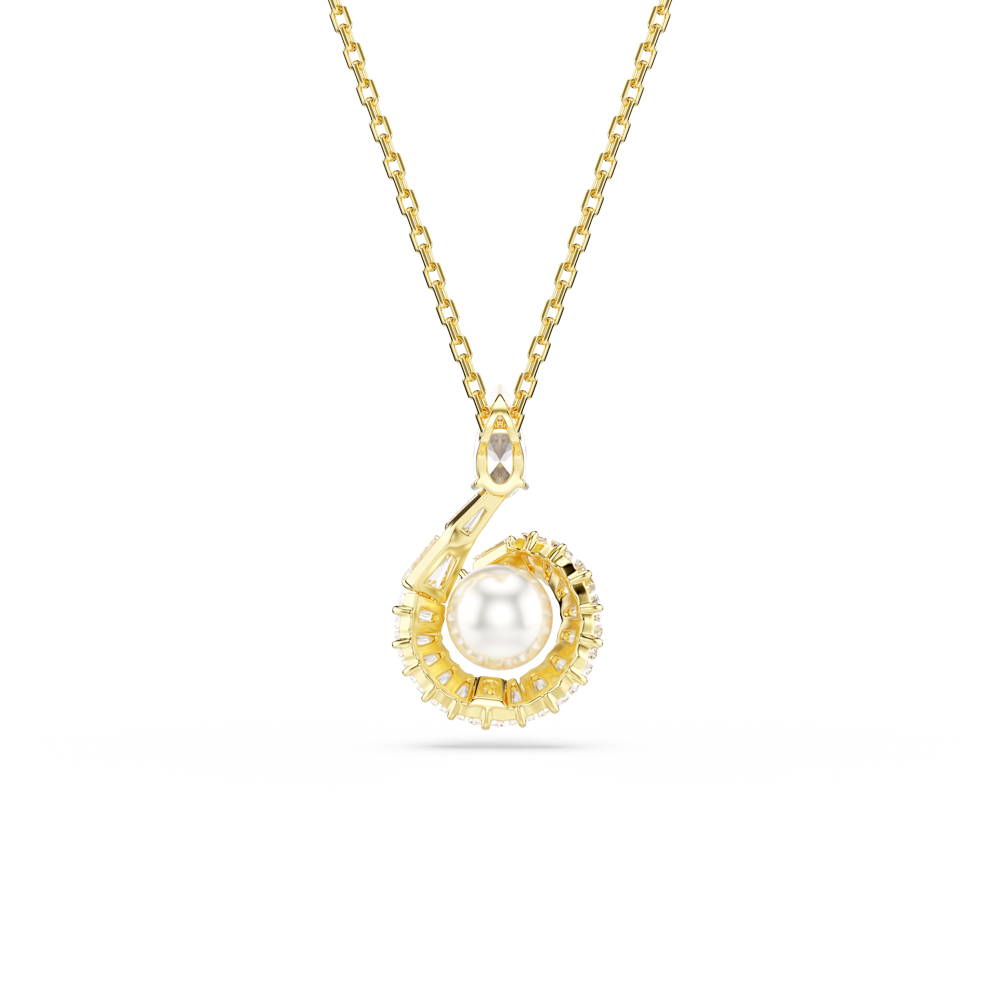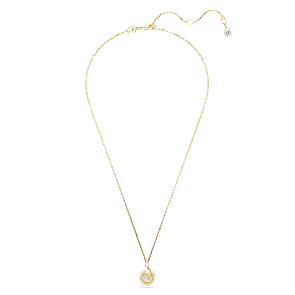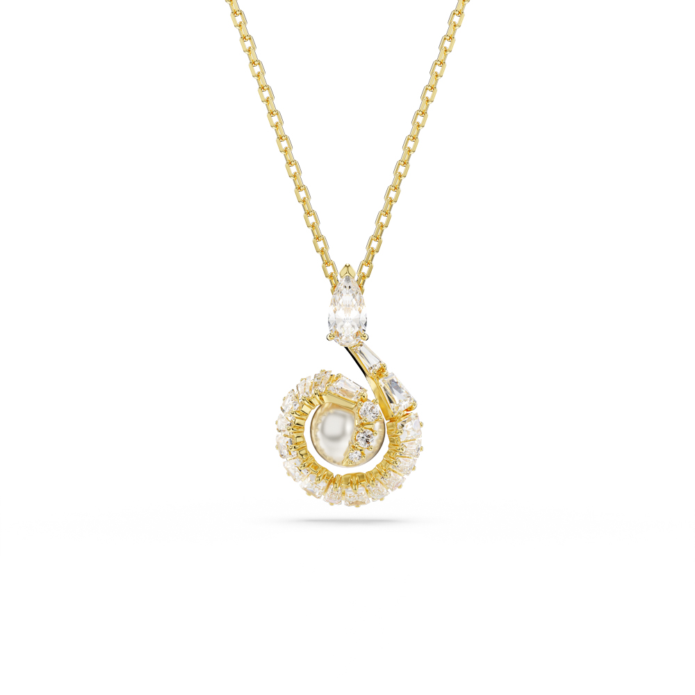 【SWAROVSKI 施華洛世奇】Snake 鏈墜 水晶珍珠 混合式切割 蛇年 白色 鍍金色(情人節禮物)