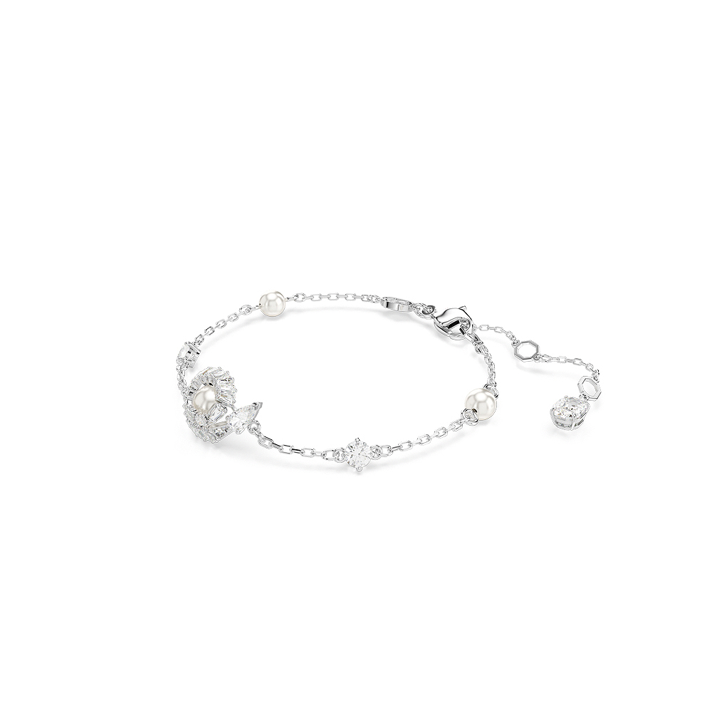 【SWAROVSKI 施華洛世奇】Snake 手鏈 水晶珍珠 混合式切割 蛇年 白色 鍍白金色(情人節禮物)