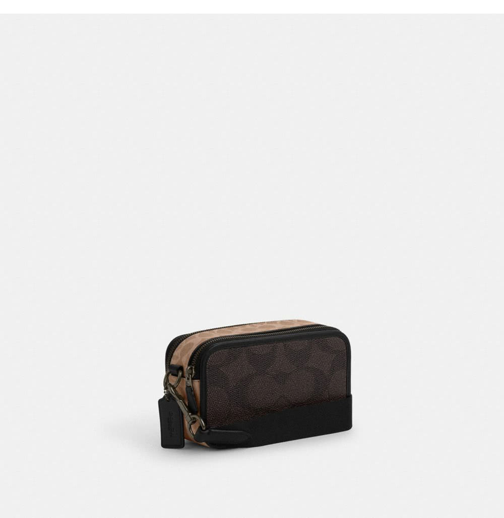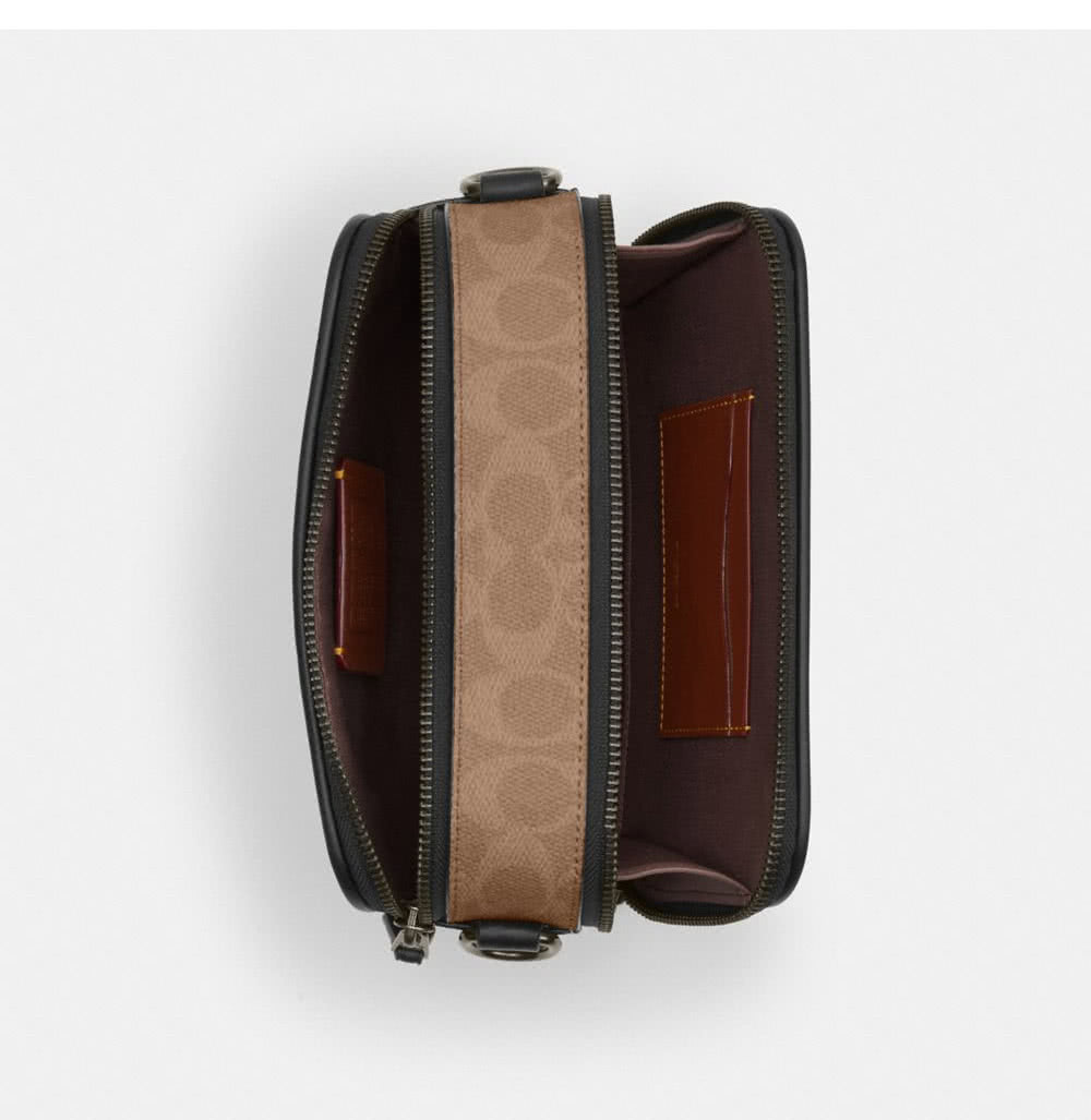 【COACH】蔻馳官方直營 WYATT撞色經典Logo斜背手袋 斜背包 側背包 斜挎包-QB/胡桃木色/棕黃色(CAB80)