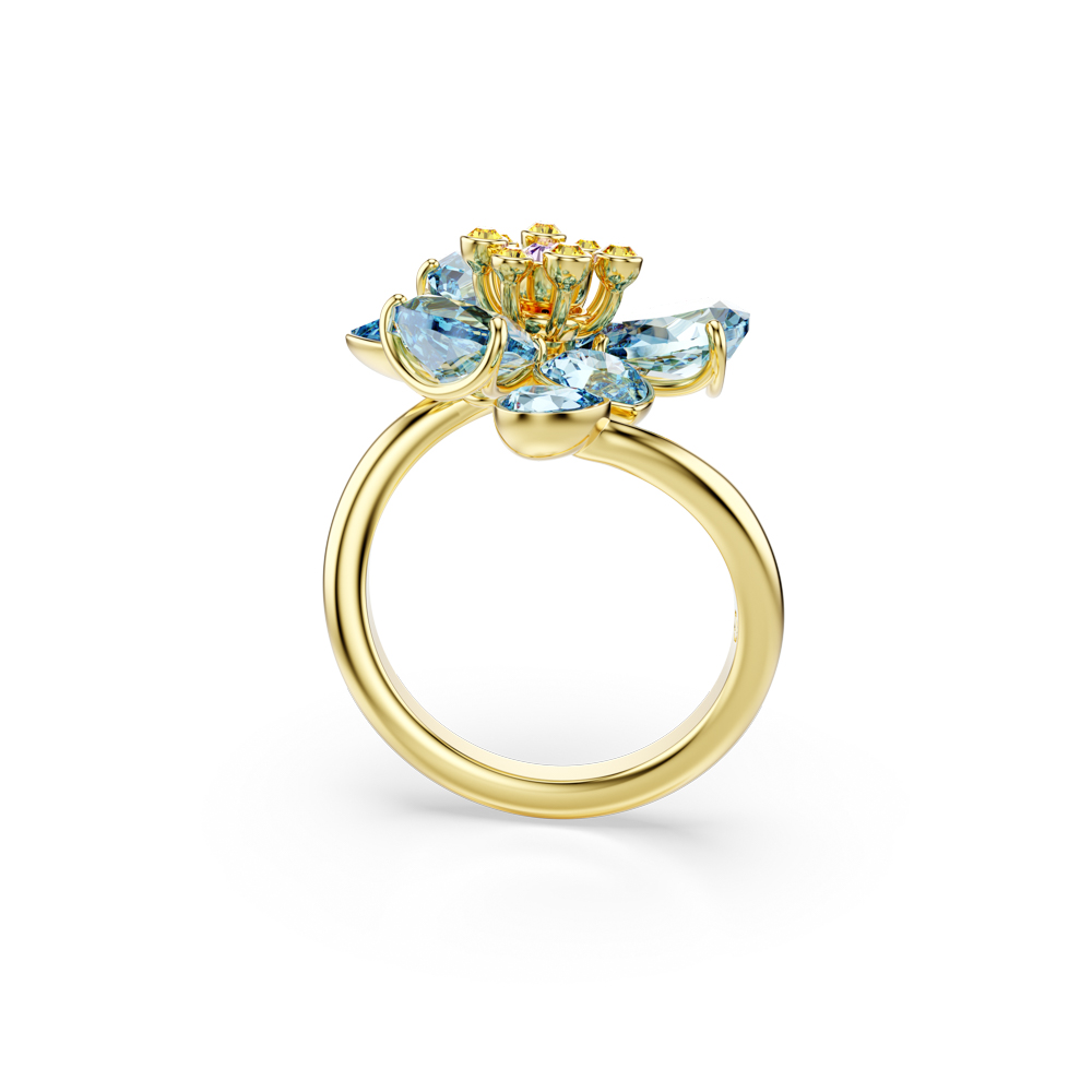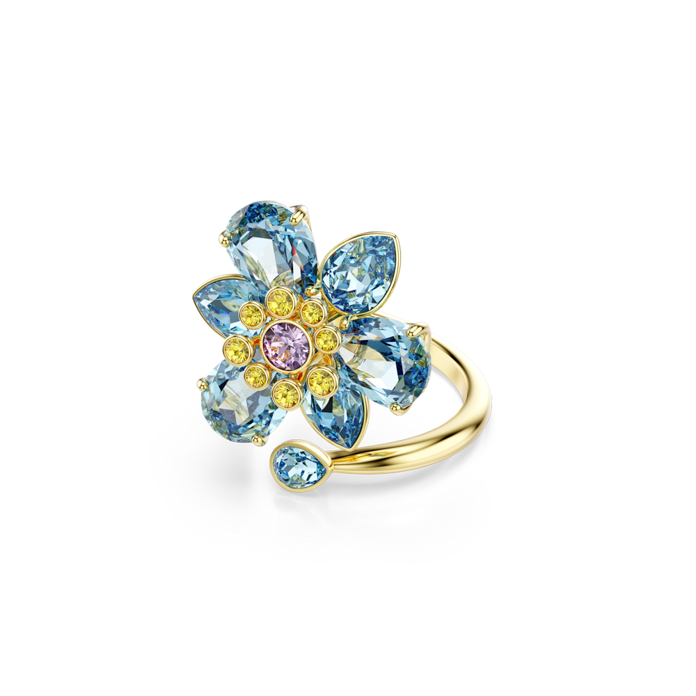 【SWAROVSKI 施華洛世奇】Idyllia 開口戒指 混合式切割 花朵 藍色 鍍金色(情人節禮物)