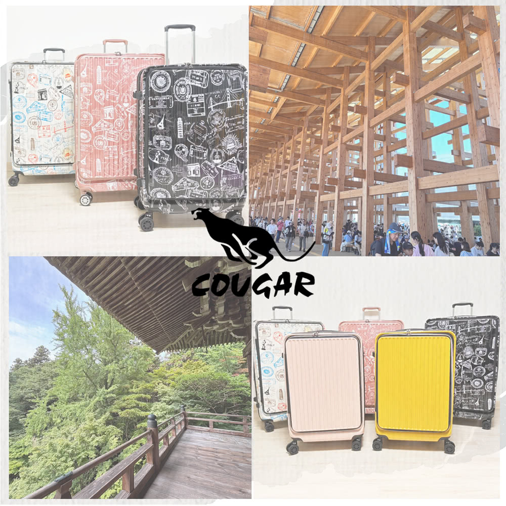 【COUGAR】29吋 前開行李箱 中開兩段式行李箱 旅行箱(9010A-多色郵票紋可選)