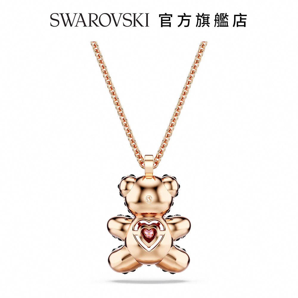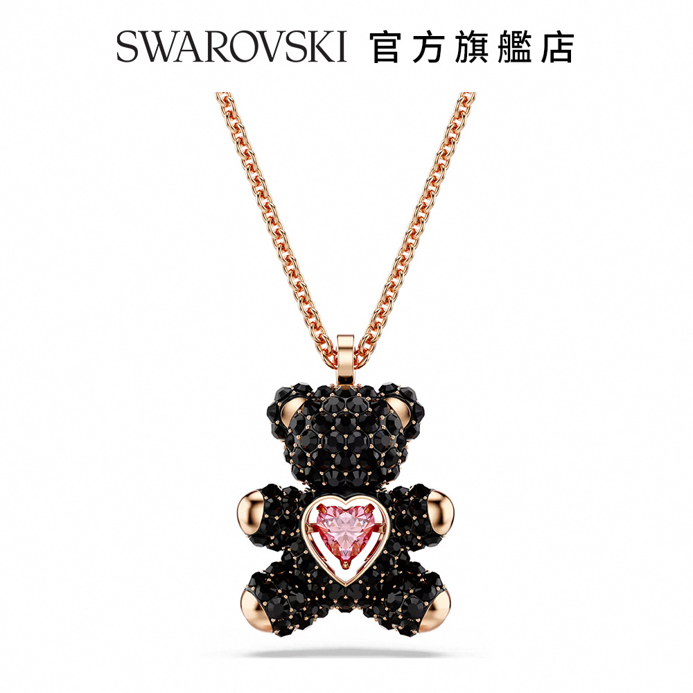 【SWAROVSKI 施華洛世奇】Teddy 鏈墜 泰迪熊 黑色 鍍玫瑰金色調(情人節禮物)