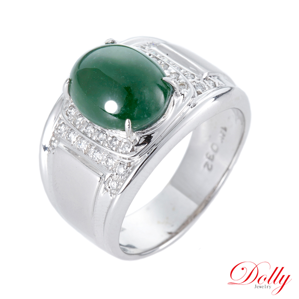 【DOLLY】緬甸 老坑綠A貨翡翠鑽石男戒(長輩送禮首選)