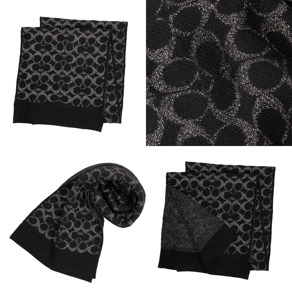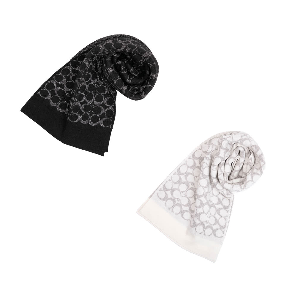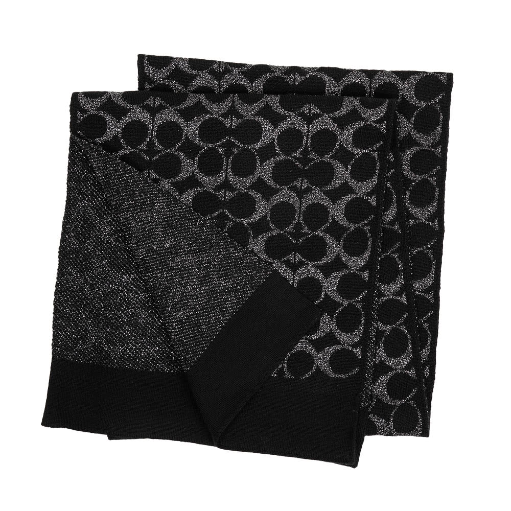 【COACH】C LOGO 金蔥雙面羊毛針織圍巾(多色任選)