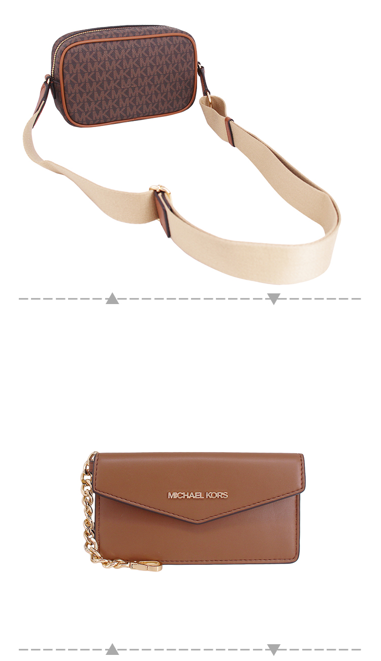 【Michael Kors】MAISIE系列 寬背帶 二合一 零錢包 / 斜背包(字母咖)