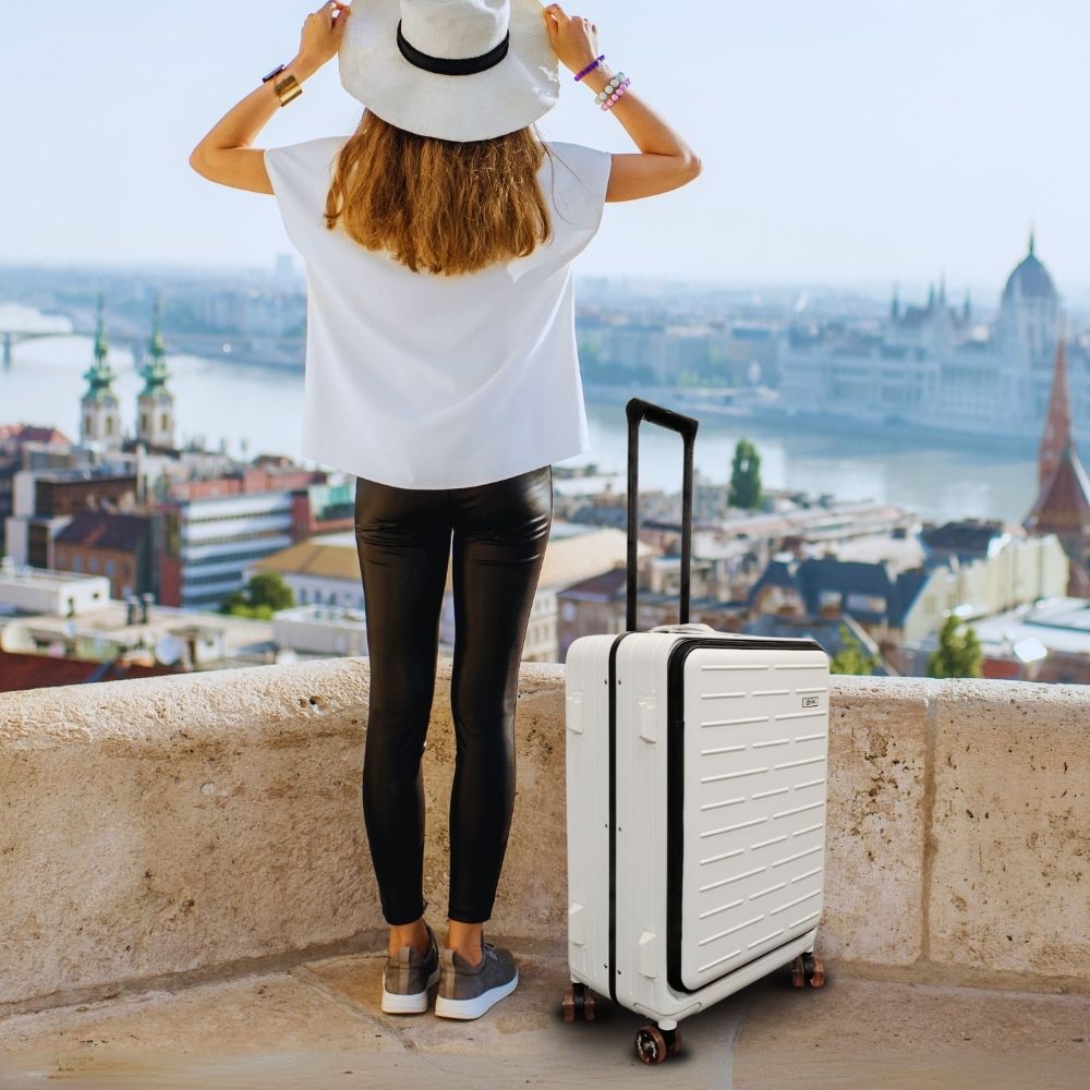 貼心雙掛勾設計,能夠掛手提袋、塑膠袋,解放雙手。同時也是站腳,放置時可以避免行李箱與地面磨擦