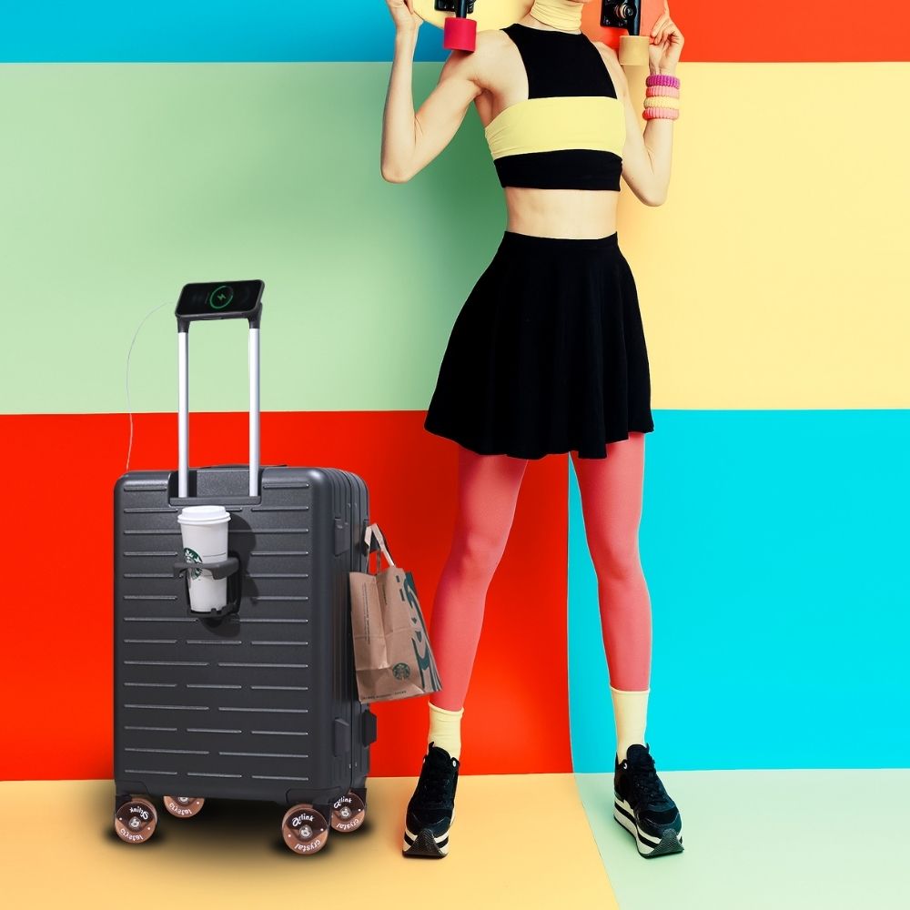 拉桿上有設計手機支架,讓你等車候機輕鬆看影片,不無聊
