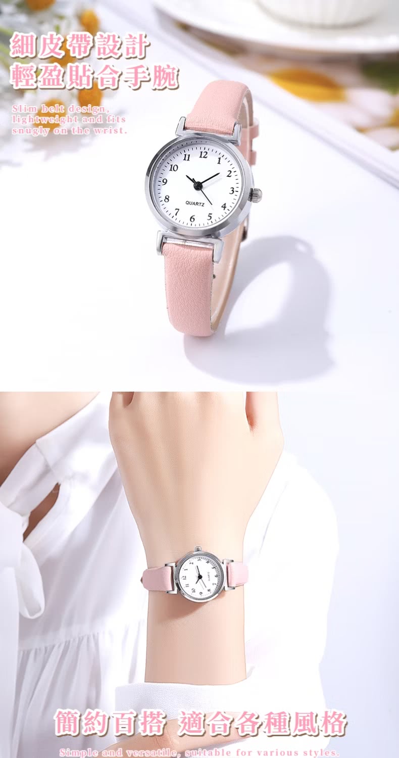 【時尚腕錶】簡約細皮帶數字錶(皮錶帶 石英錶 手錶 休閒錶 兒童錶 國中生 高中生 女錶 皮帶錶 考場)