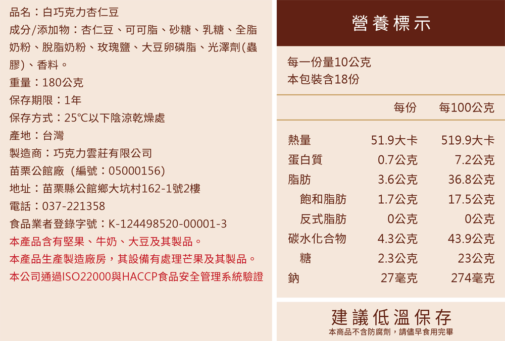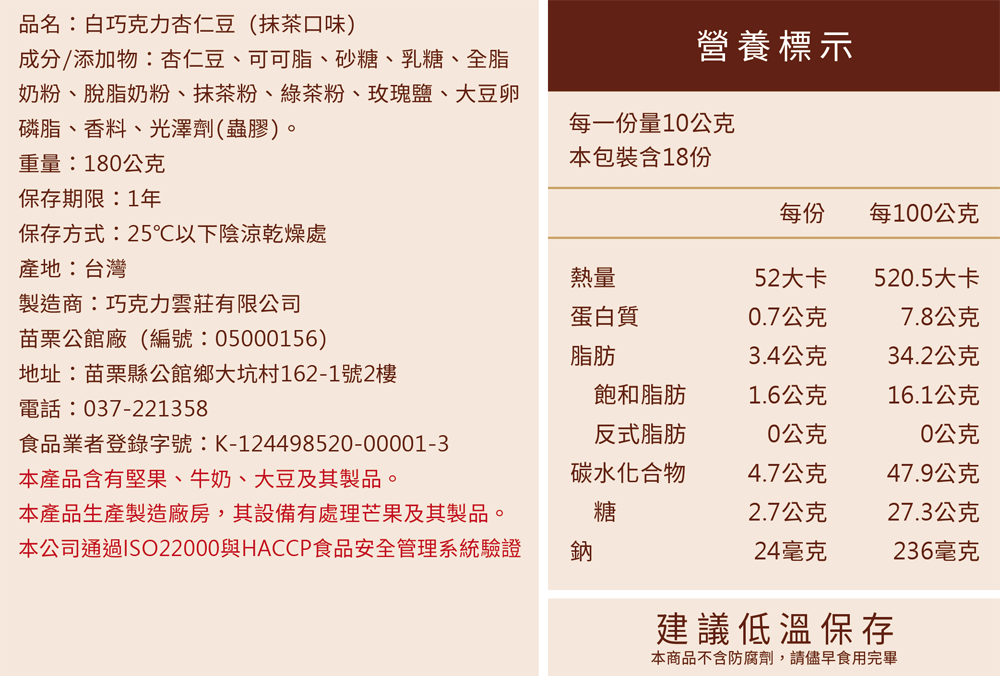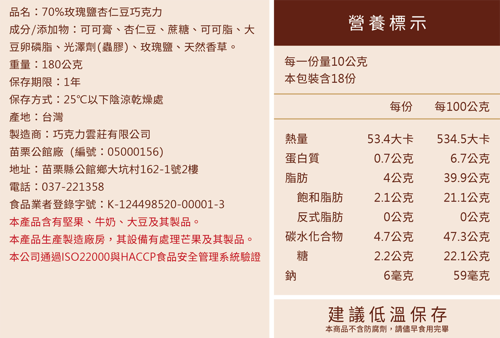 【巧克力雲莊】巧克力杏仁豆180g(白巧克力/70%玫瑰鹽/抹茶/草莓)