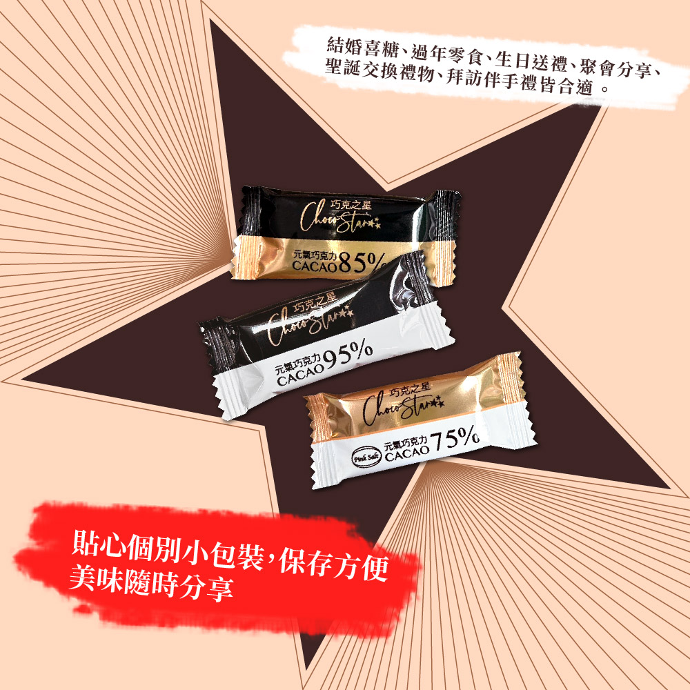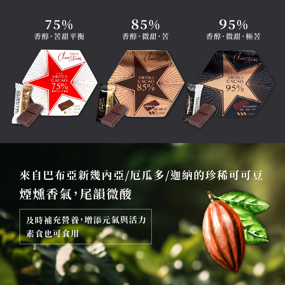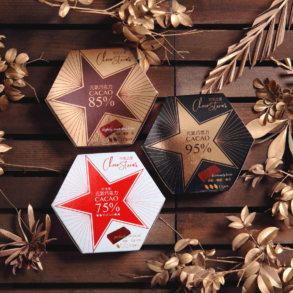 【巧克力雲莊】75%/85%/95%元氣黑巧克力任選2盒組(12片/盒_輕包裝/純素)
