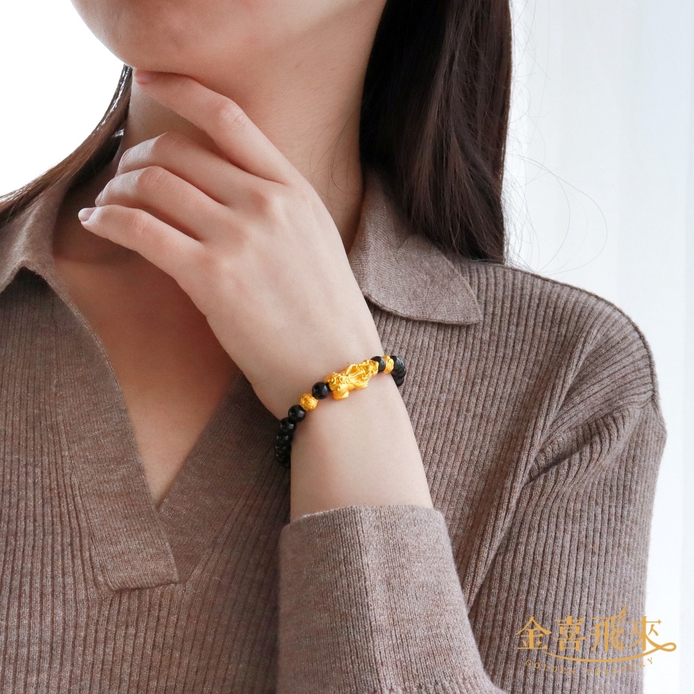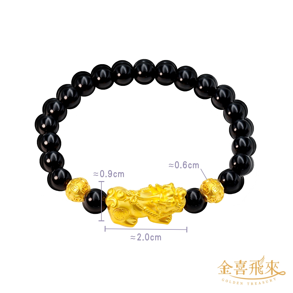 【金喜飛來】黃金手鍊貔貅雙金錢珠6mm瑪瑙(0.32錢±0.03)