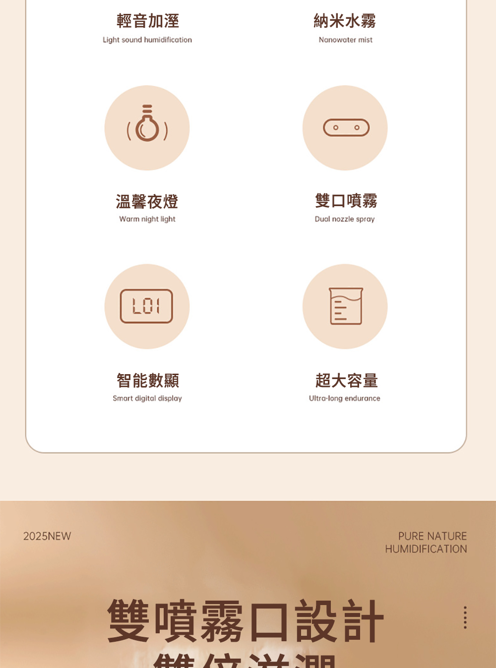 【MUAN】大容量數顯雙噴加濕器 納米霧化水氧機 USB桌面空氣淨化器 保濕補水噴霧器 增濕器