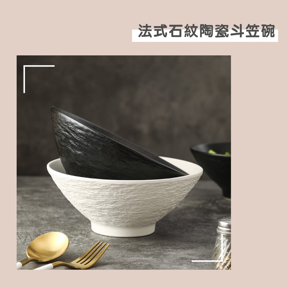 【渥思】法式石紋陶瓷斗笠碗5吋(飯碗.餐具.陶瓷碗.入厝禮)