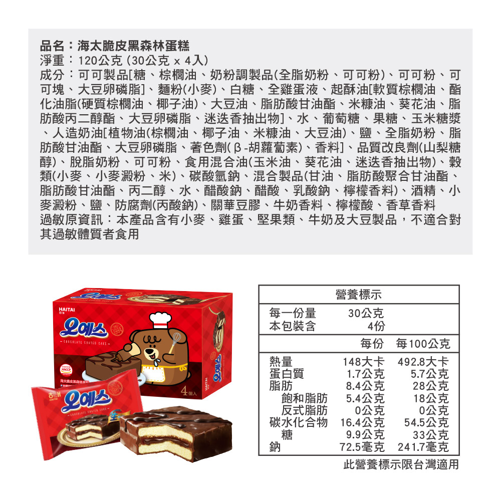 【HAITAI 海太】脆皮蛋糕-黑森林120gX2件組