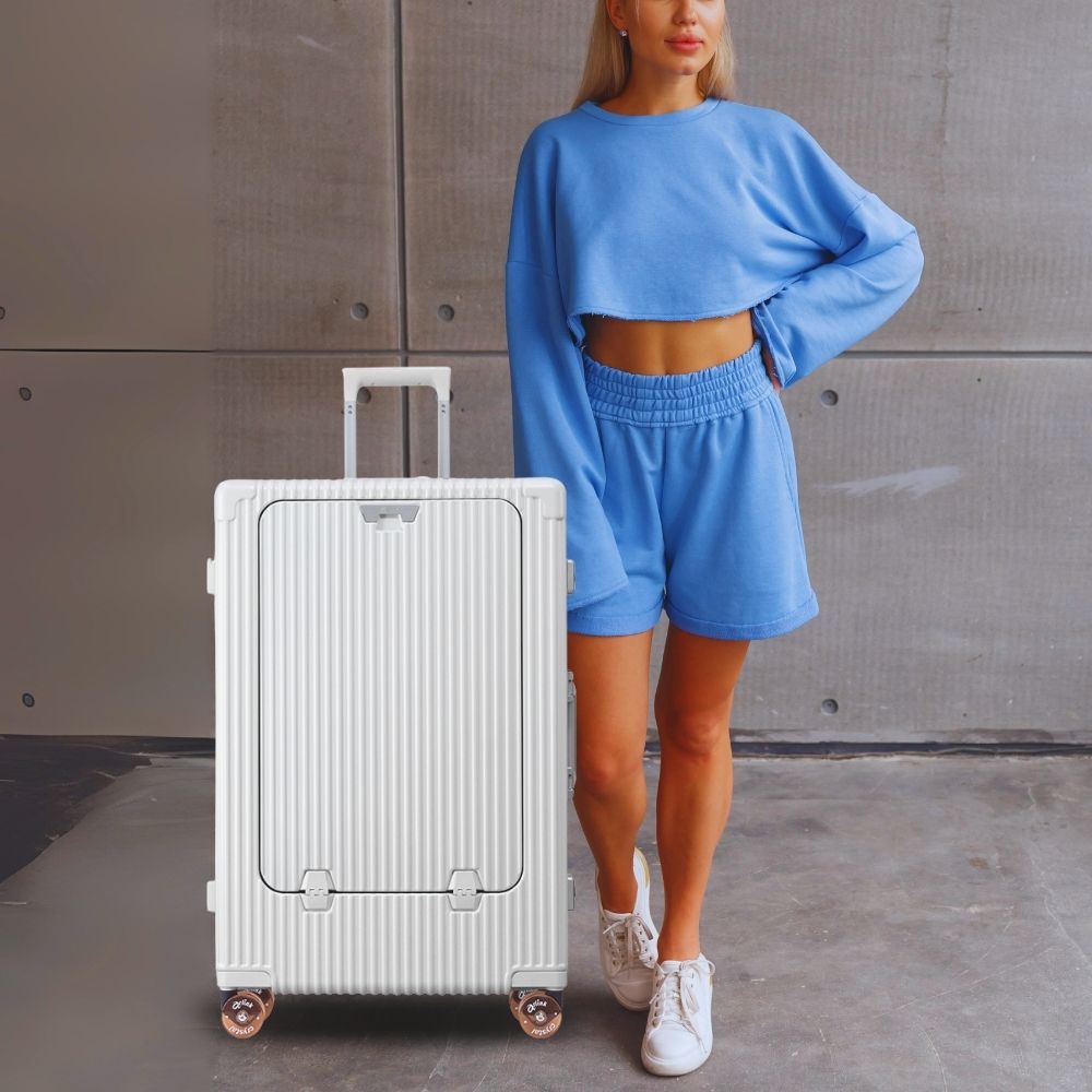 鋁合金邊框,相較拉鍊行李箱更加防水、耐摔耐撞、安全不易被撬開