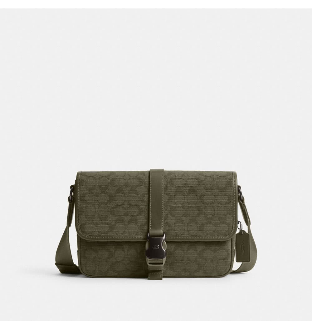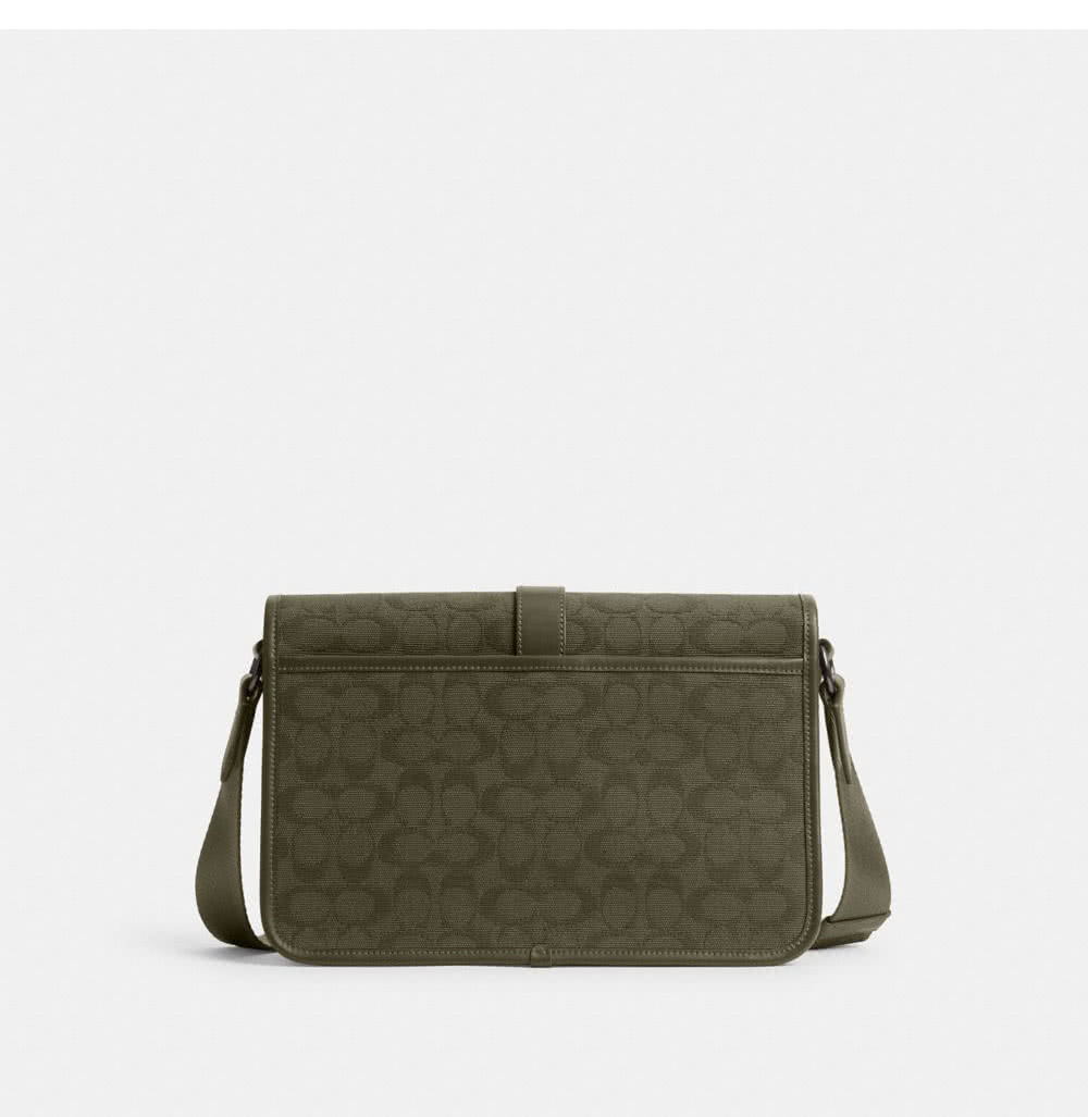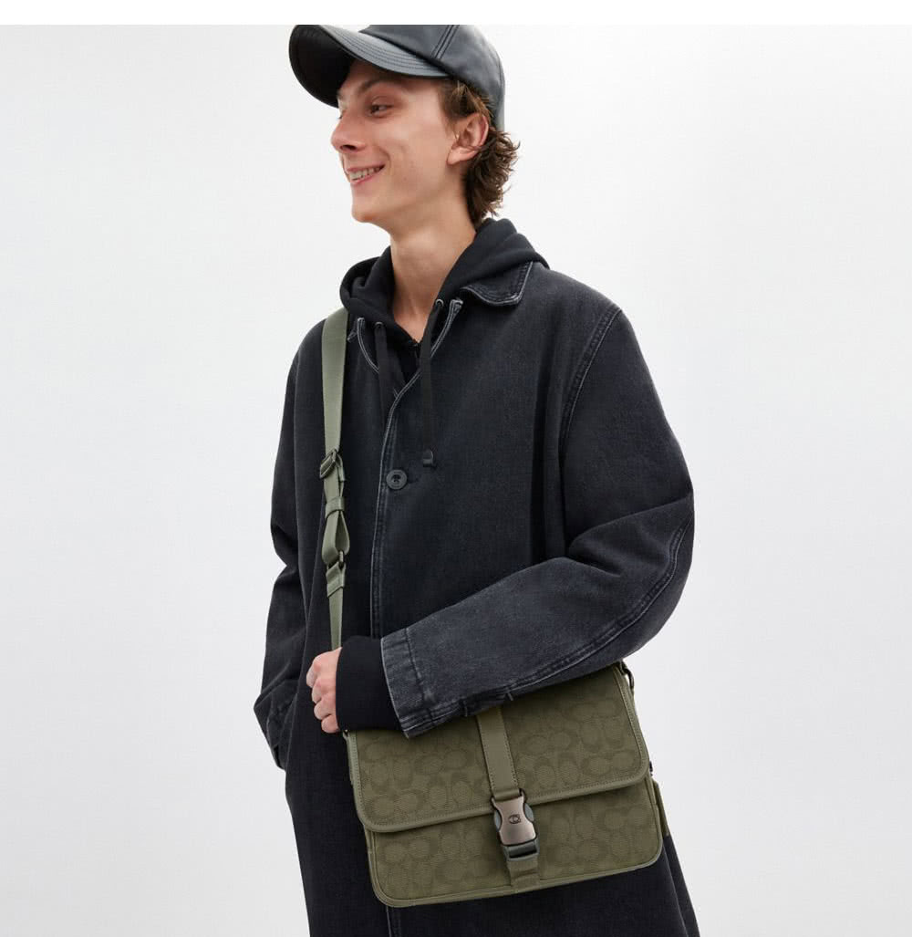【COACH】蔻馳官方直營 LEAGUE經典Logo郵差包 騎行手袋 騎行包 斜背包-軍綠色(CU041)