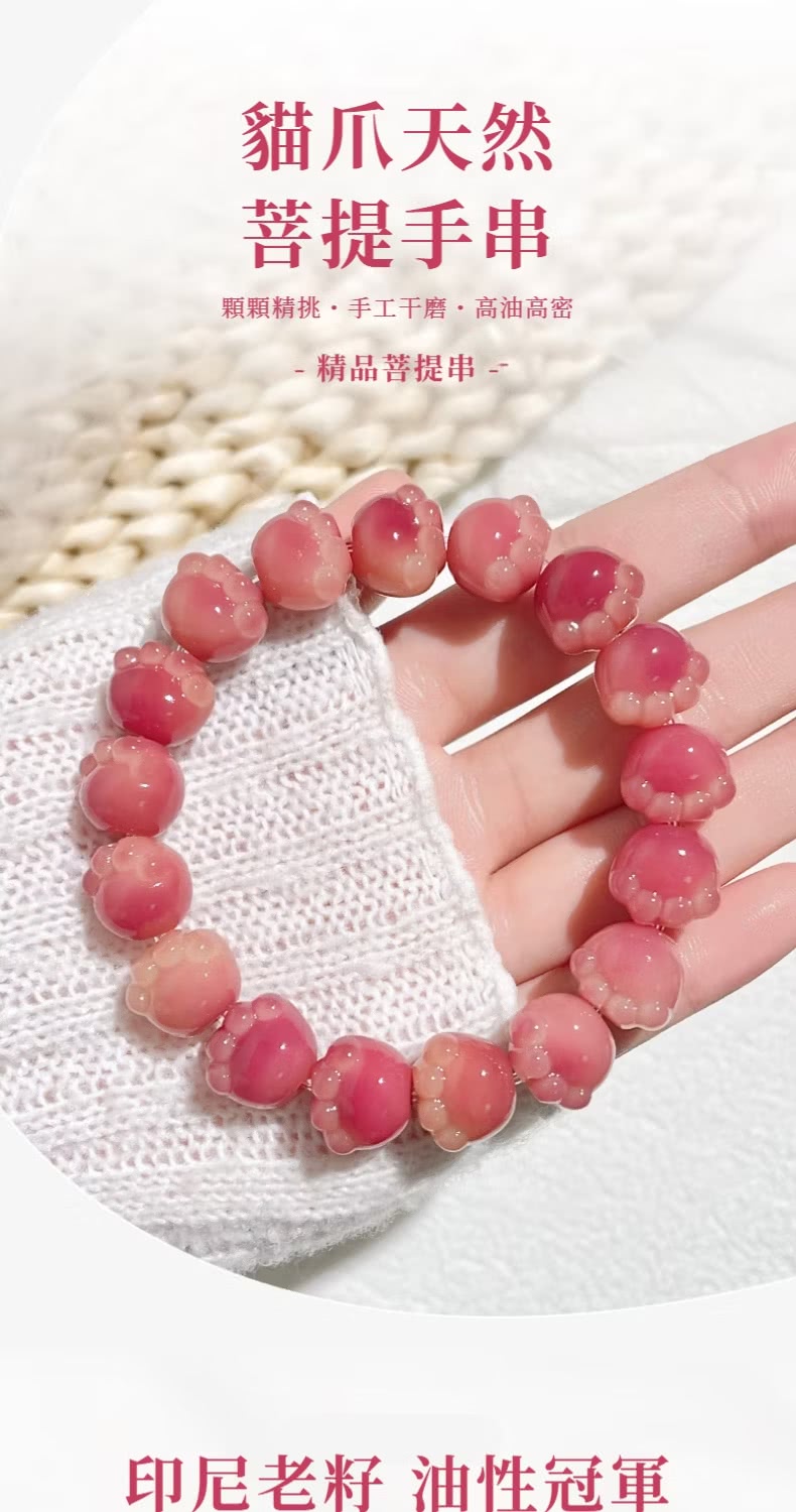【可愛盤玩】貓爪天然菩提手串(印尼老籽 菩提根 佛珠手鍊 手珠 念珠 飾品 手環 開運招財 避邪)