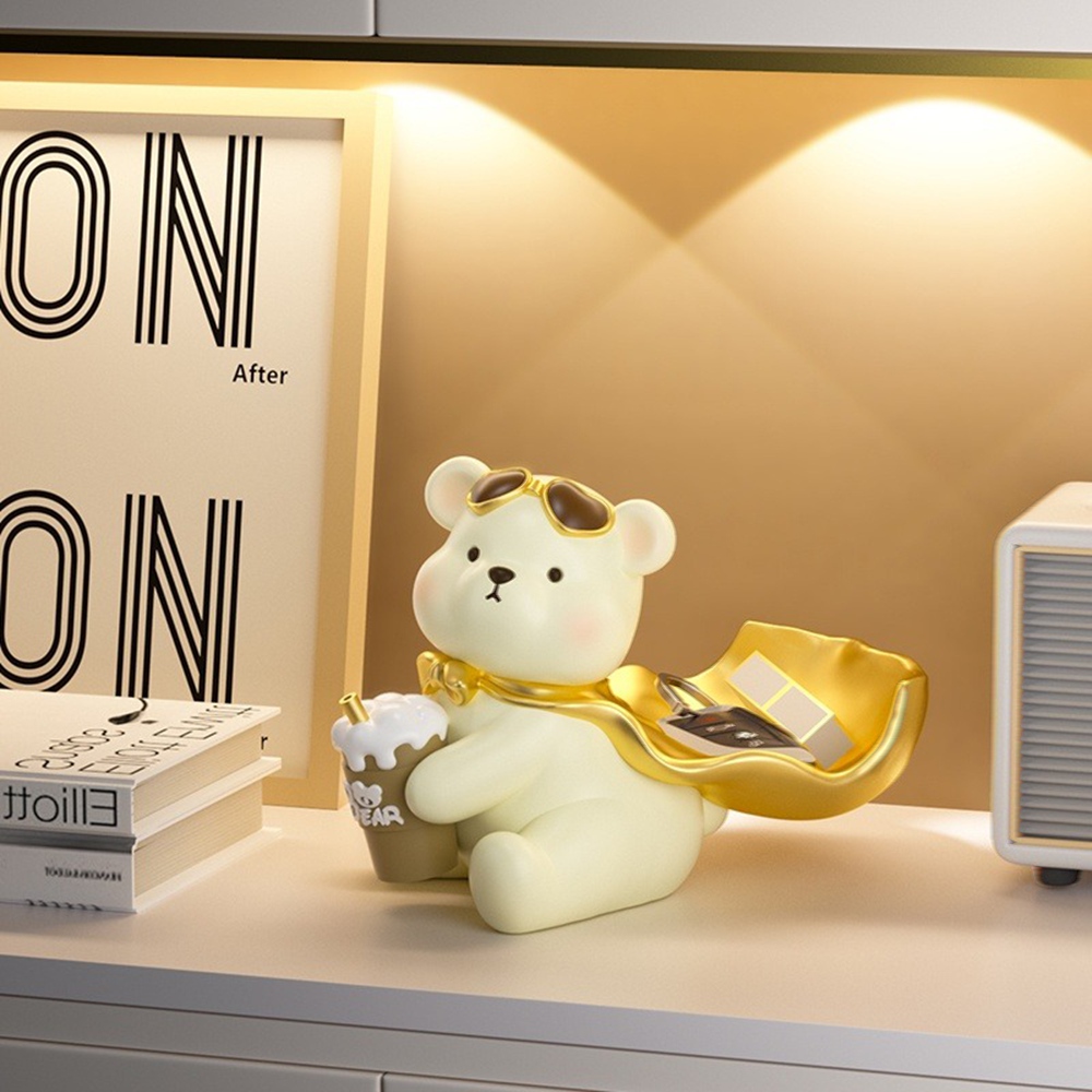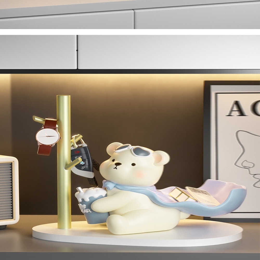 【喜芊旗艦店】桌上擺件 家居裝飾品 鑰匙收納擺件 喬遷新居禮品(披風奶熊+置物架//加大儲物/預售15天)