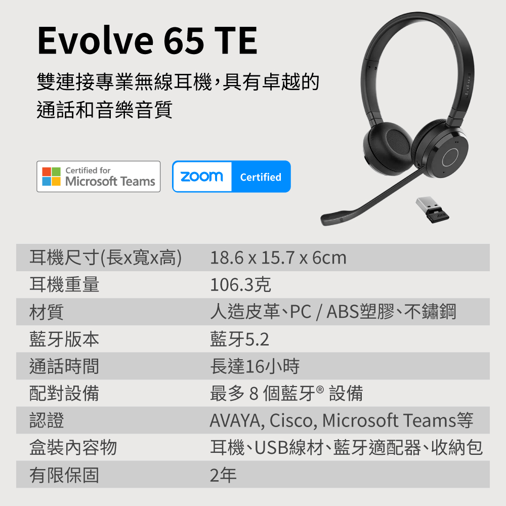 【Jabra】官方直營 Evolve 65 TE 雙連接無線耳機