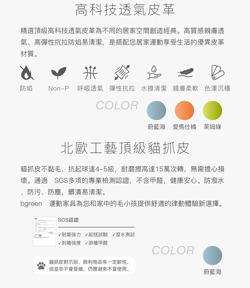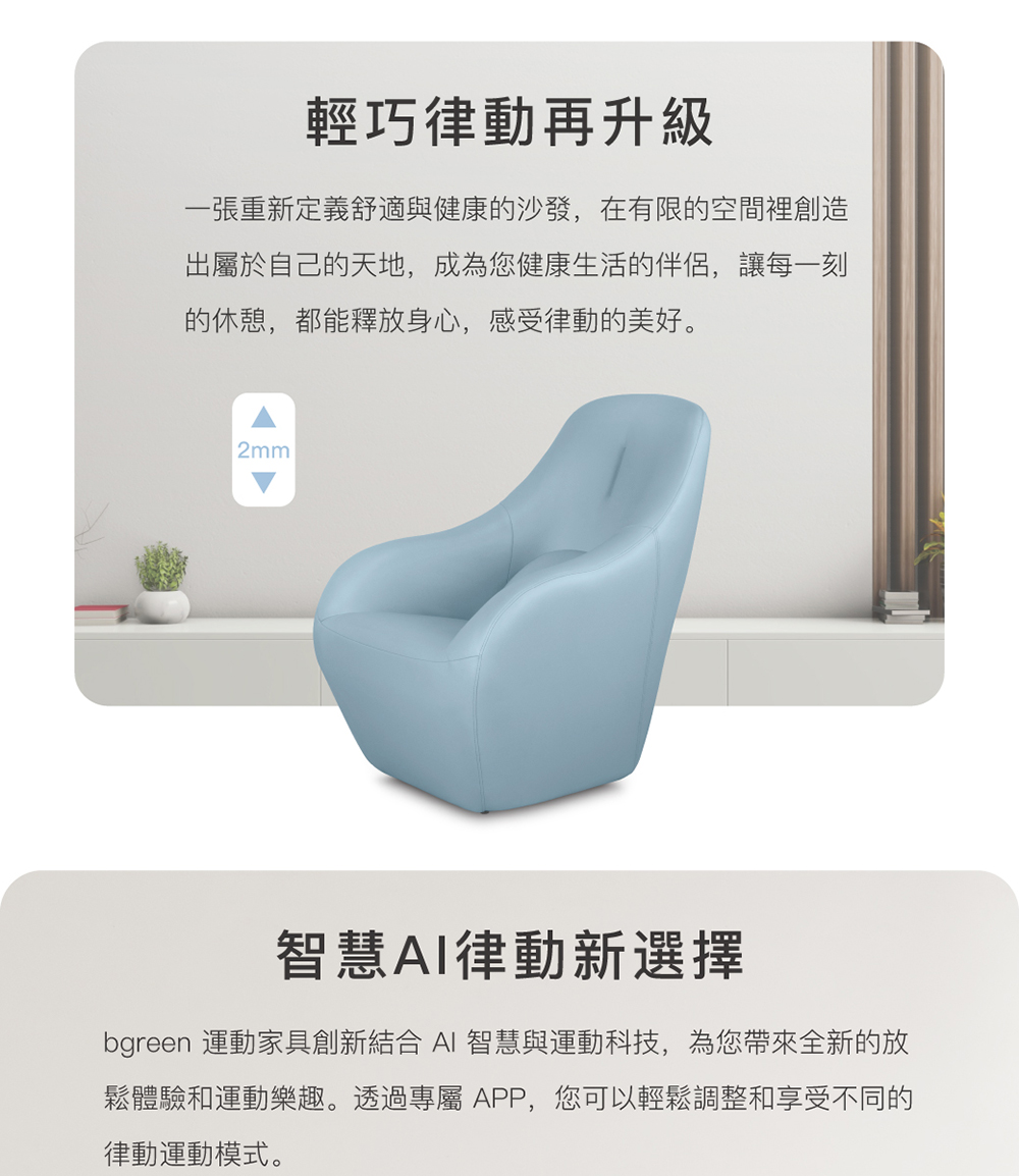 (電商平台僅銷售標準款,高科技皮革款式,欲購買AI功能款式或其他皮革款式請至bgreen運動家具實體門市或bgreen運動家具商城)