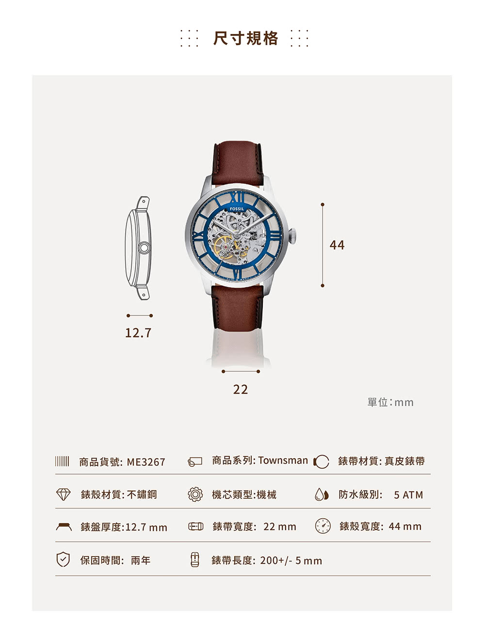 Townsman 摩登都會機械手錶是一款現代經典之作,精心打造以展現精密的自動機芯。其自動上鍊機制透過深藍色太陽紋鏤空錶盤呈現,讓內部結構一覽無遺,展現無與倫比的機械美感。這款腕錶專為精準計時而設計,搭配柔軟的棕色皮革錶帶,散發出優雅且洗練的氣息。無論日常穿搭或輕鬆造型,它都是矚目的時尚之選。