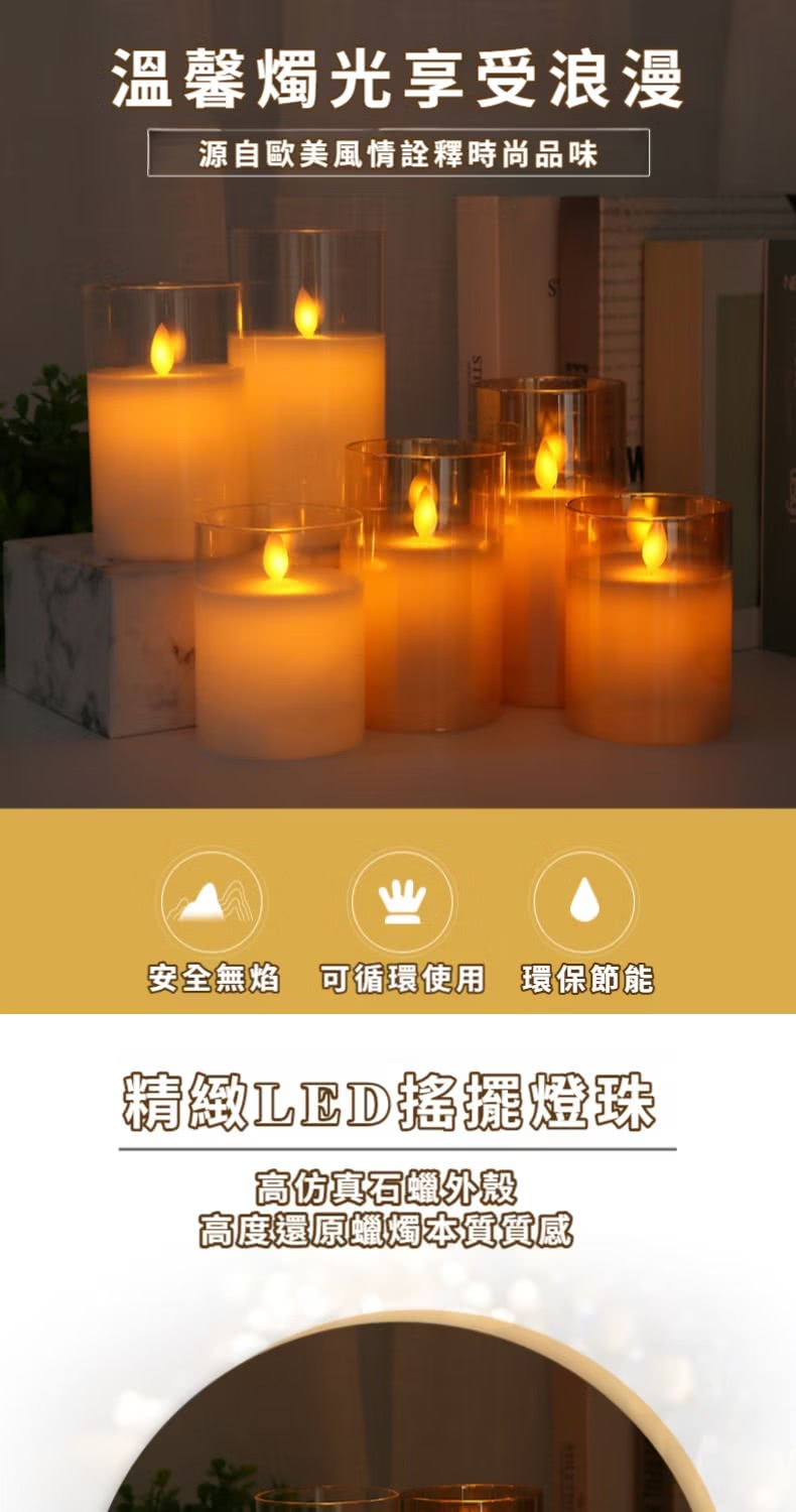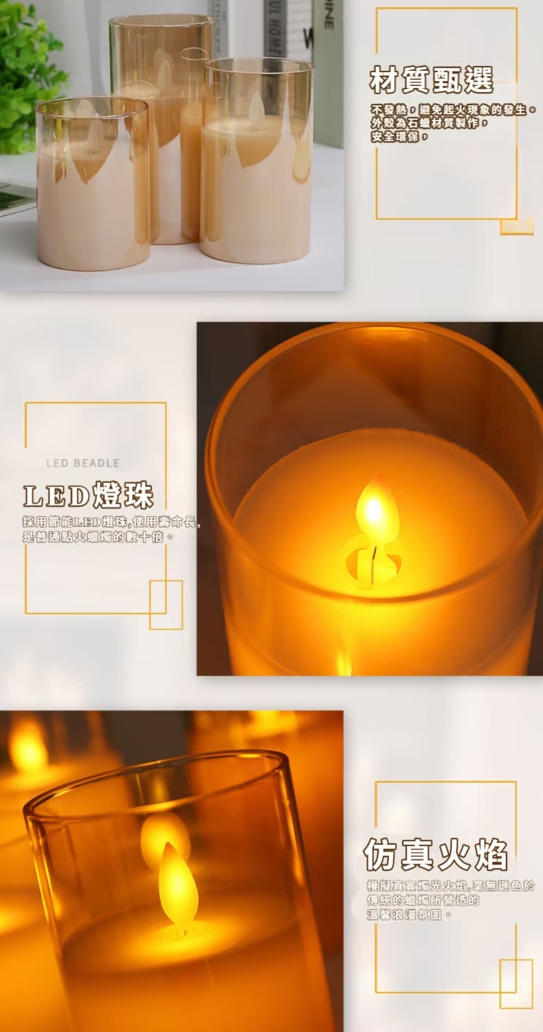 【仿真火苗】浪漫LED電子火光搖曳蠟燭-3件套組(無火無煙 小夜燈 氣氛燈 神明 佛燈 神桌燈 公媽 交換禮物)