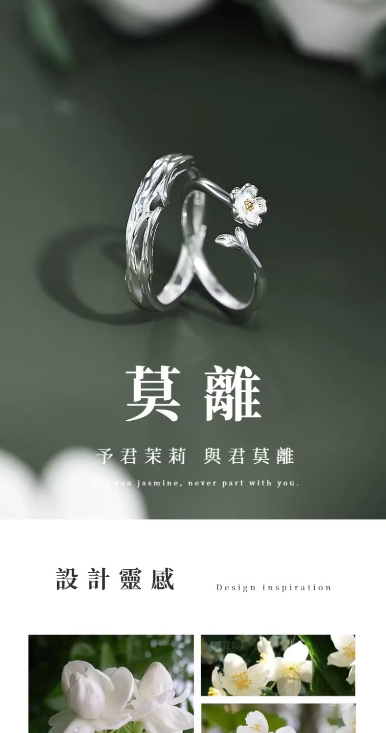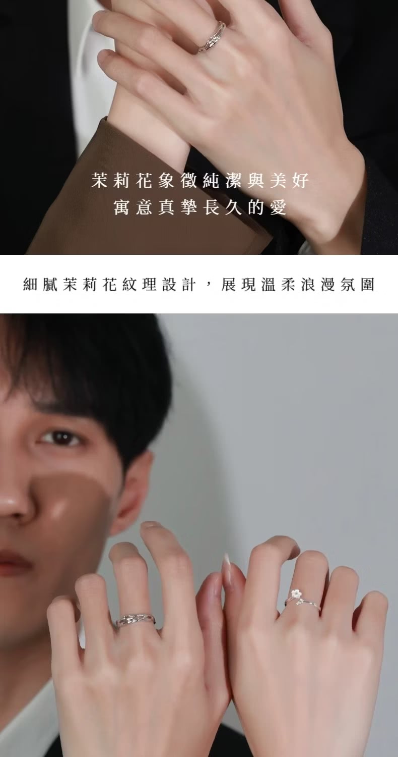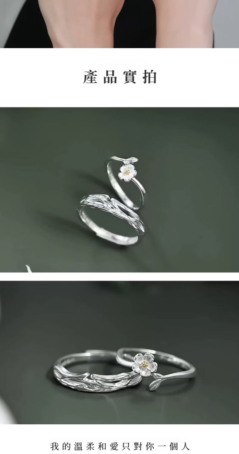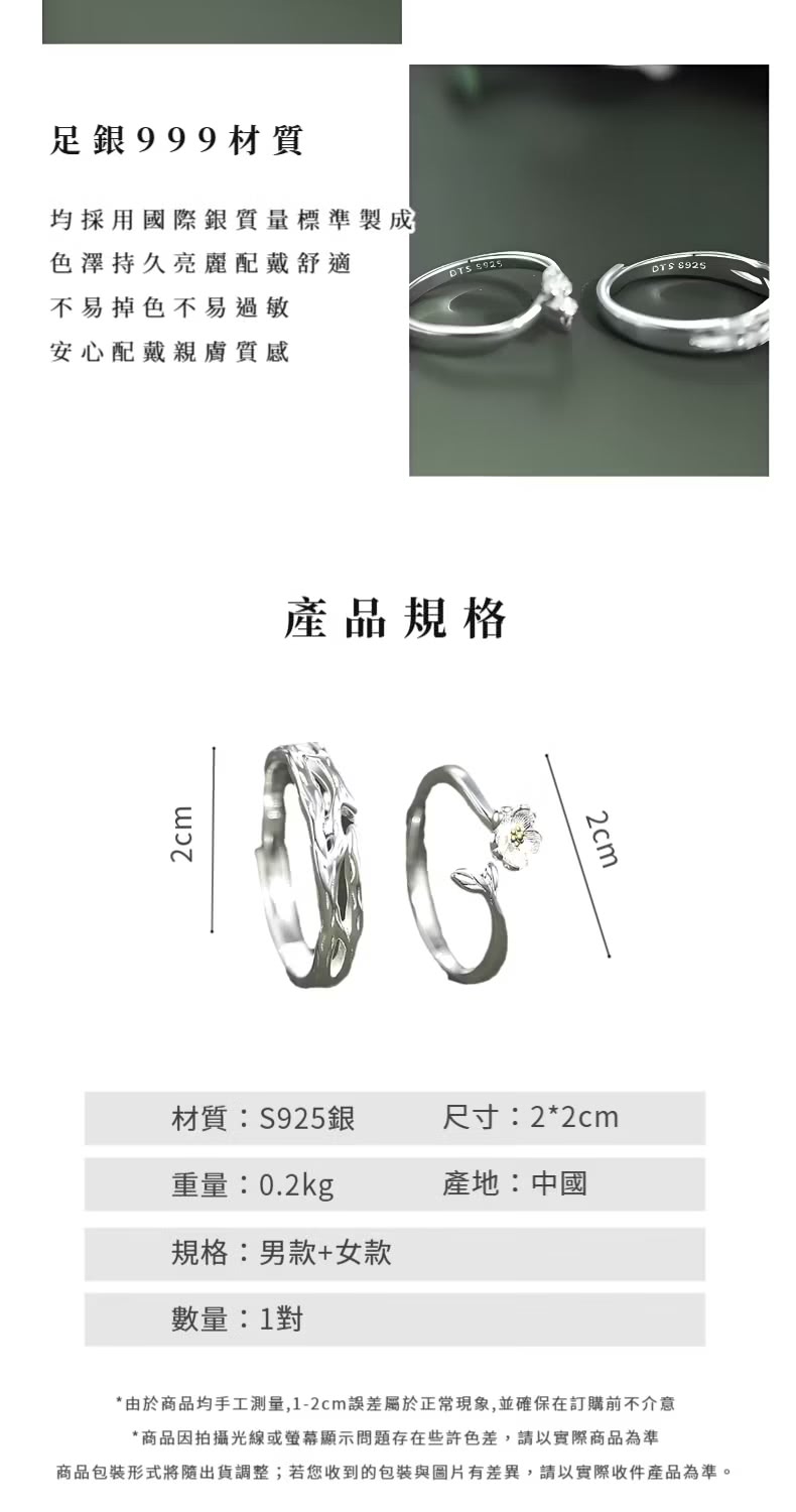 【Loyvera】S925純銀莫離茉莉花情侶對戒(純潔的愛情 對戒 戒指 銀戒 可調節 情人節禮物 百搭飾品)