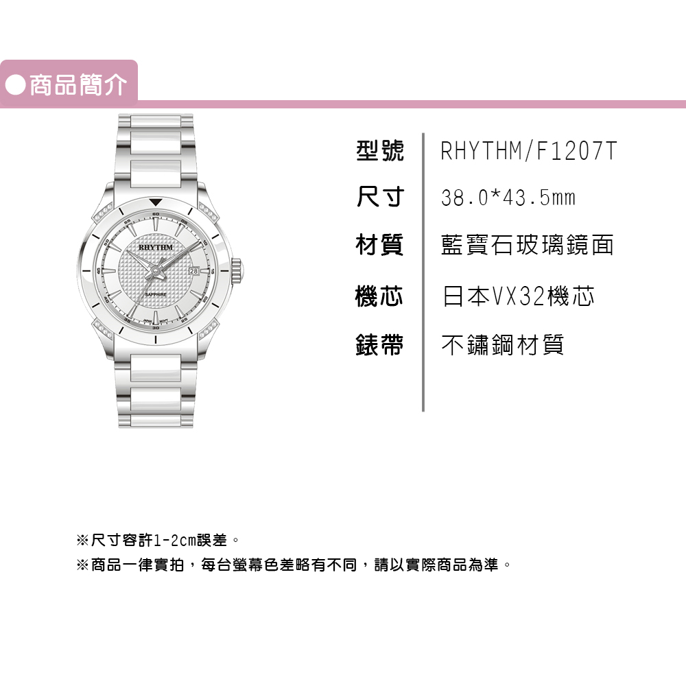 【RHYTHM 麗聲】F1207T 極簡簡單設計 日期顯示 藍寶石水晶玻璃 不鏽鋼手錶