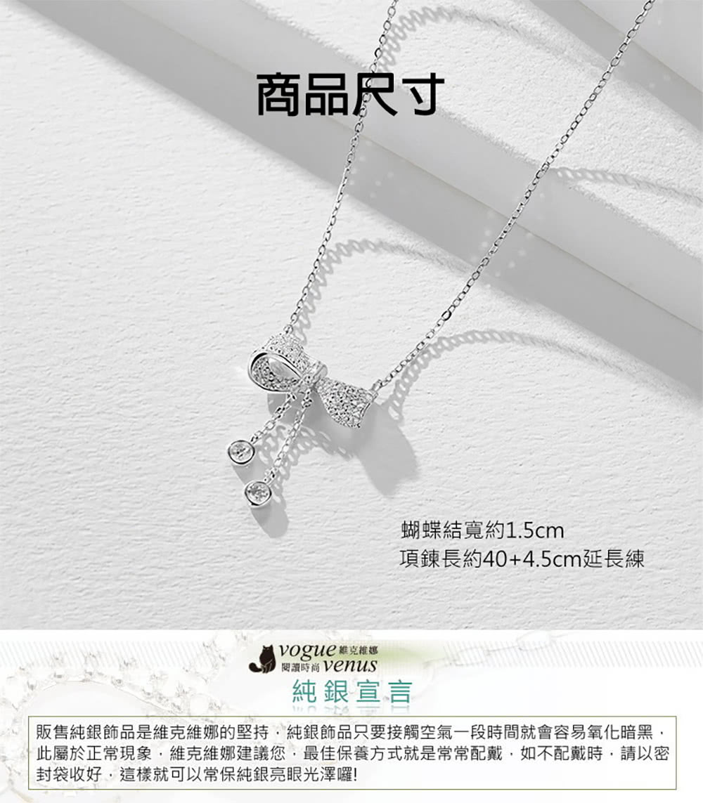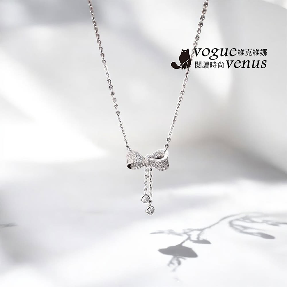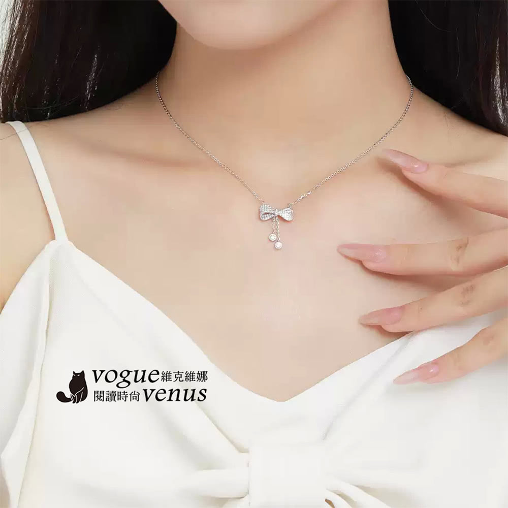 【維克維娜】立體蝴蝶結水鑽流蘇925純銀項鍊