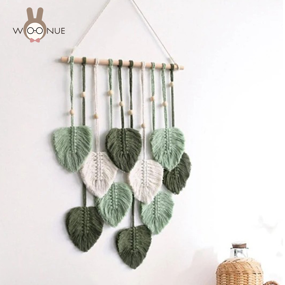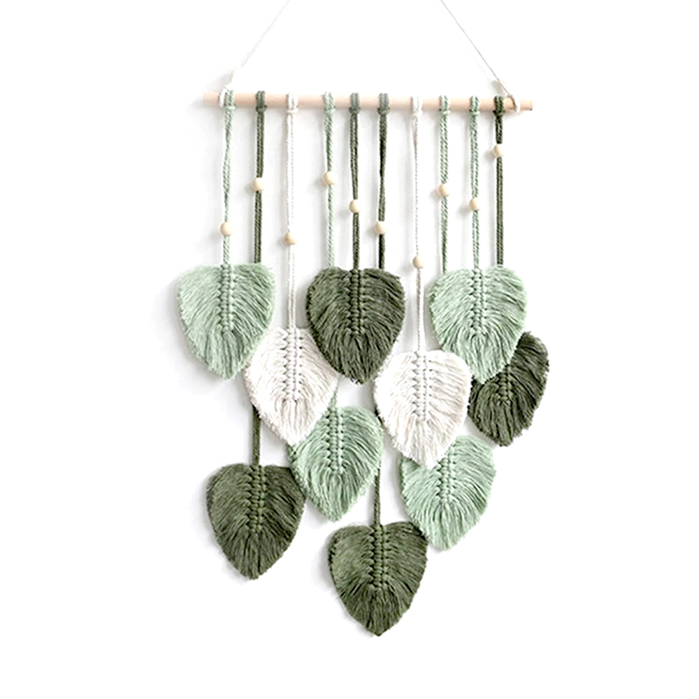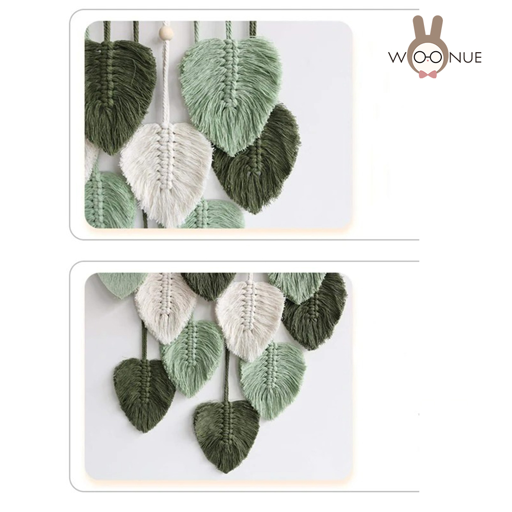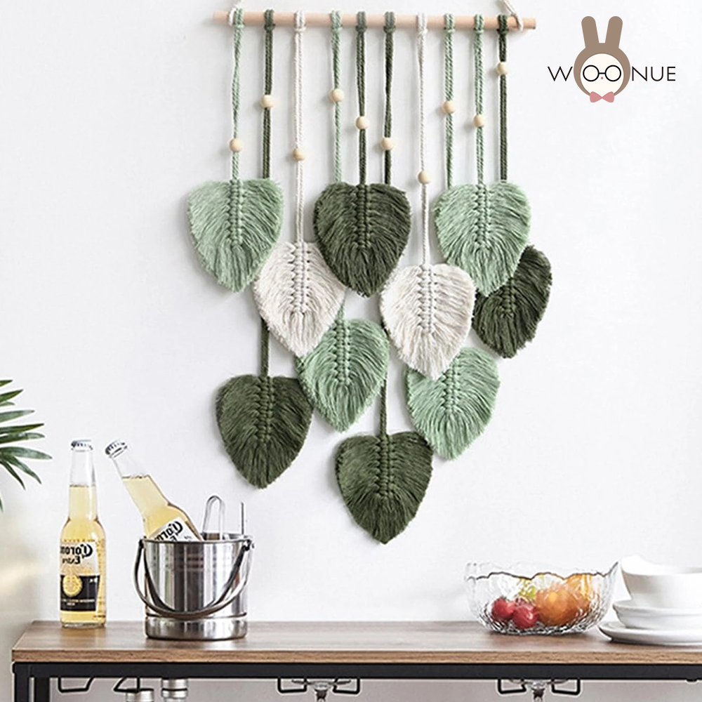 【栗子洋行】macrame手工壁幔壁掛毯裝飾慢編織壁掛掛飾壁毯樹葉子綠白(喬遷禮物朋友禮物搬家禮物)