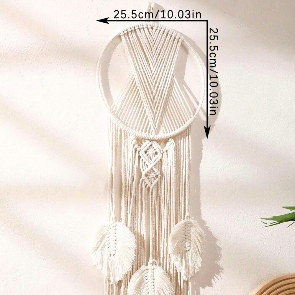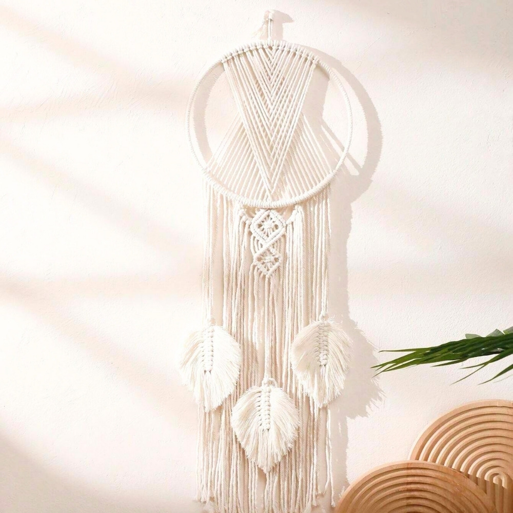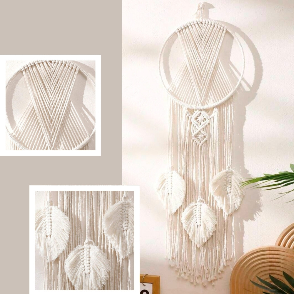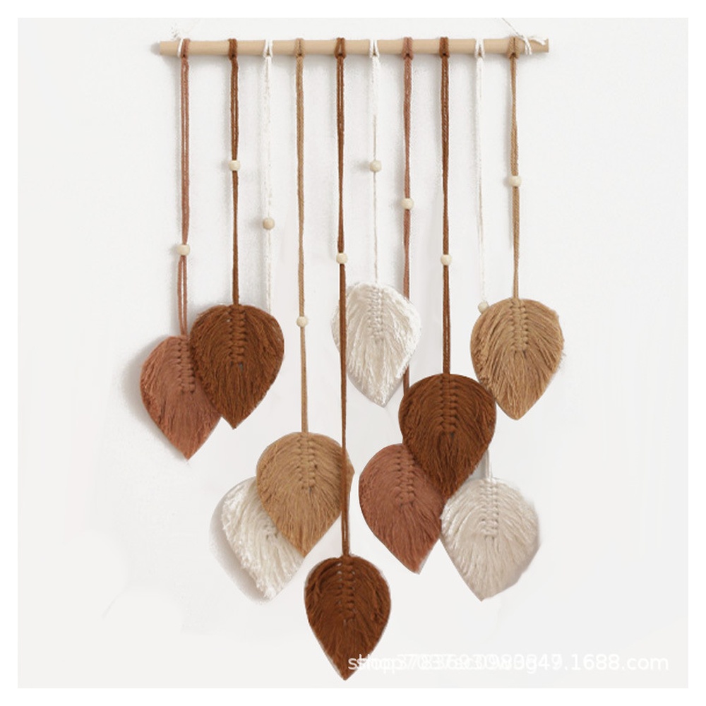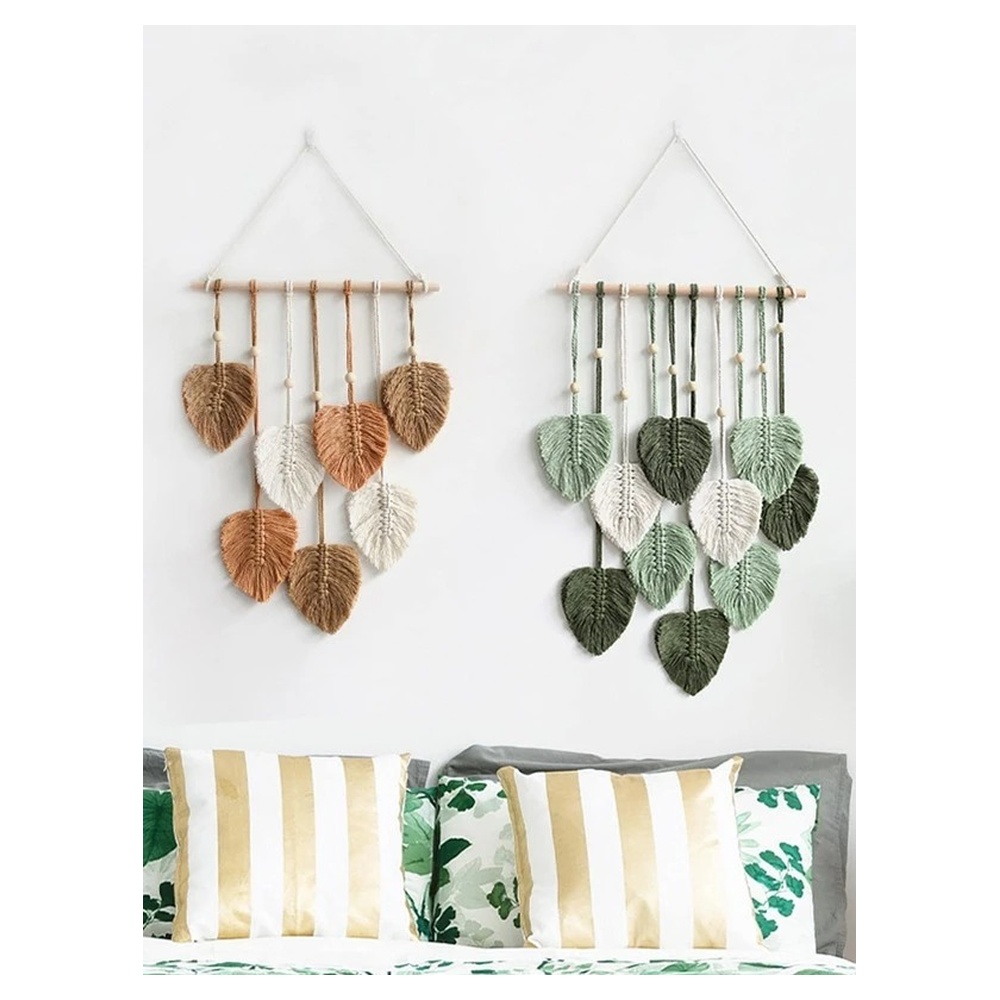 【栗子洋行】macrame手工壁幔壁掛毯裝飾慢編織壁掛掛飾壁毯樹葉子綠白(喬遷禮物朋友禮物搬家禮物)