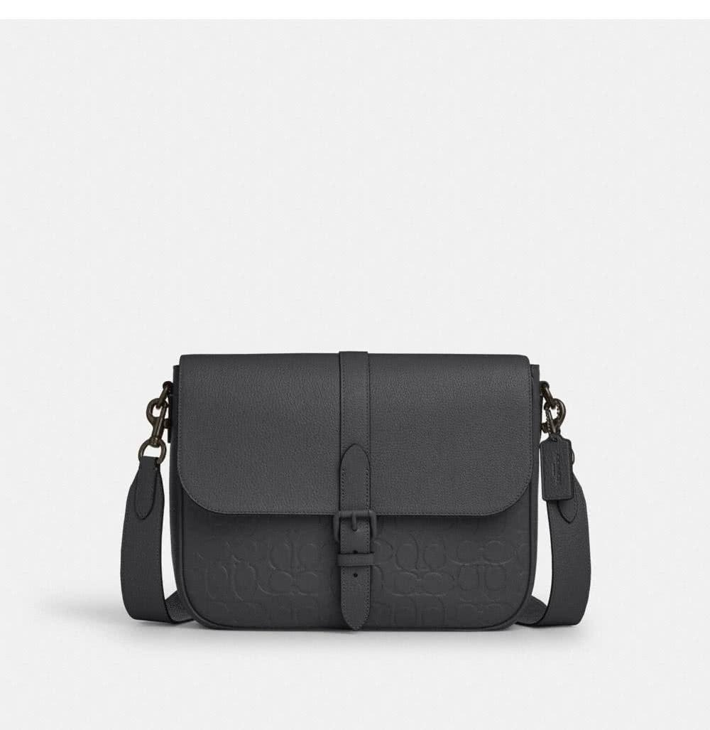 【COACH】蔻馳官方直營 WARNER經典Logo皮革郵差包 騎行手袋 騎行包 斜背包-1J/木炭灰色(CAJ81)