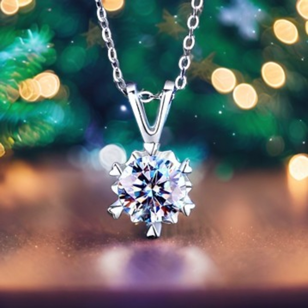 【珀緹雅】冰雪之戀1克拉雪花純銀項鍊(1克拉925純銀 冰雪之戀 雪花項鍊 莫桑鑽 水鑽 仿真鑽)
