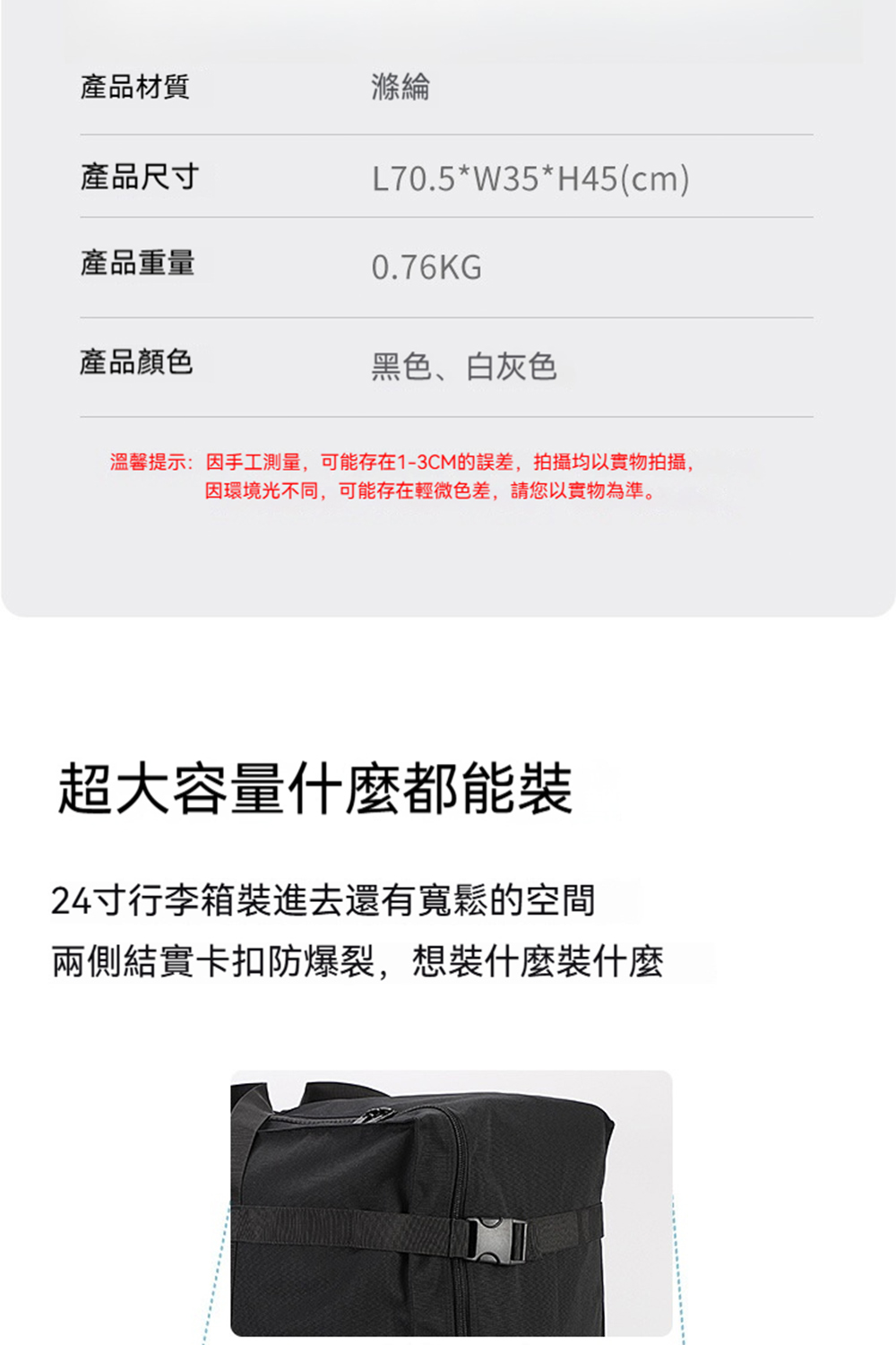 👜容量:75L,可放A4、iPad、長夾及其他隨身物品