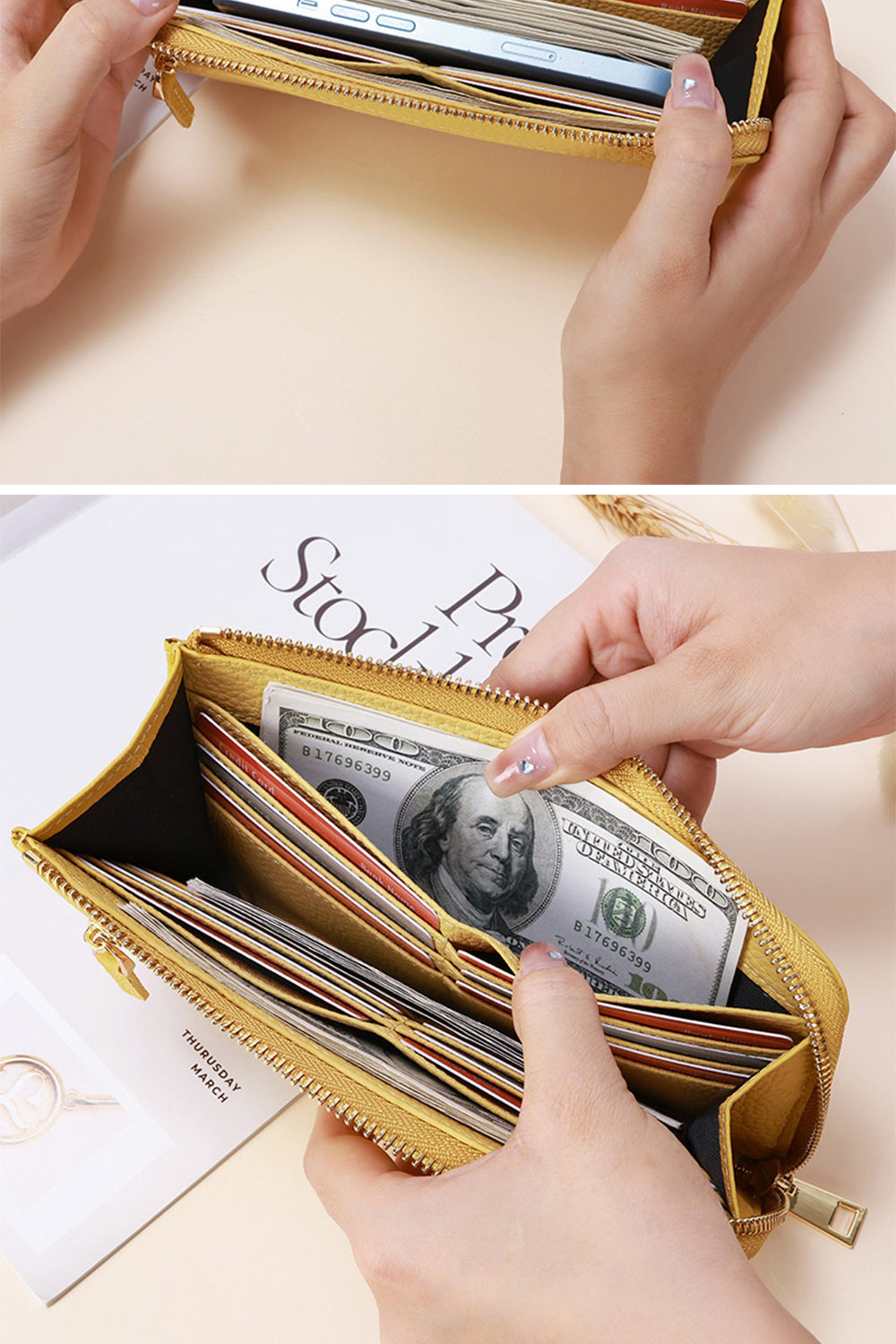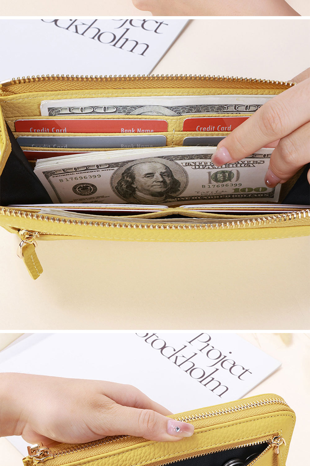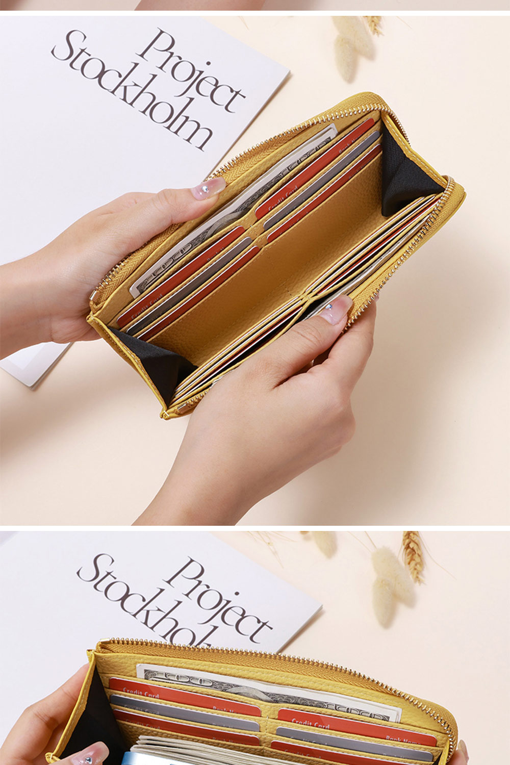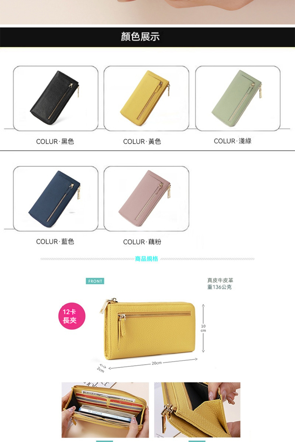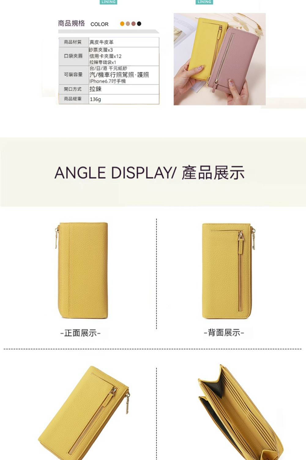 👜容量 / 結構:卡片層*12、暗袋*2、大鈔位、外幅拉鍊袋、外貼袋