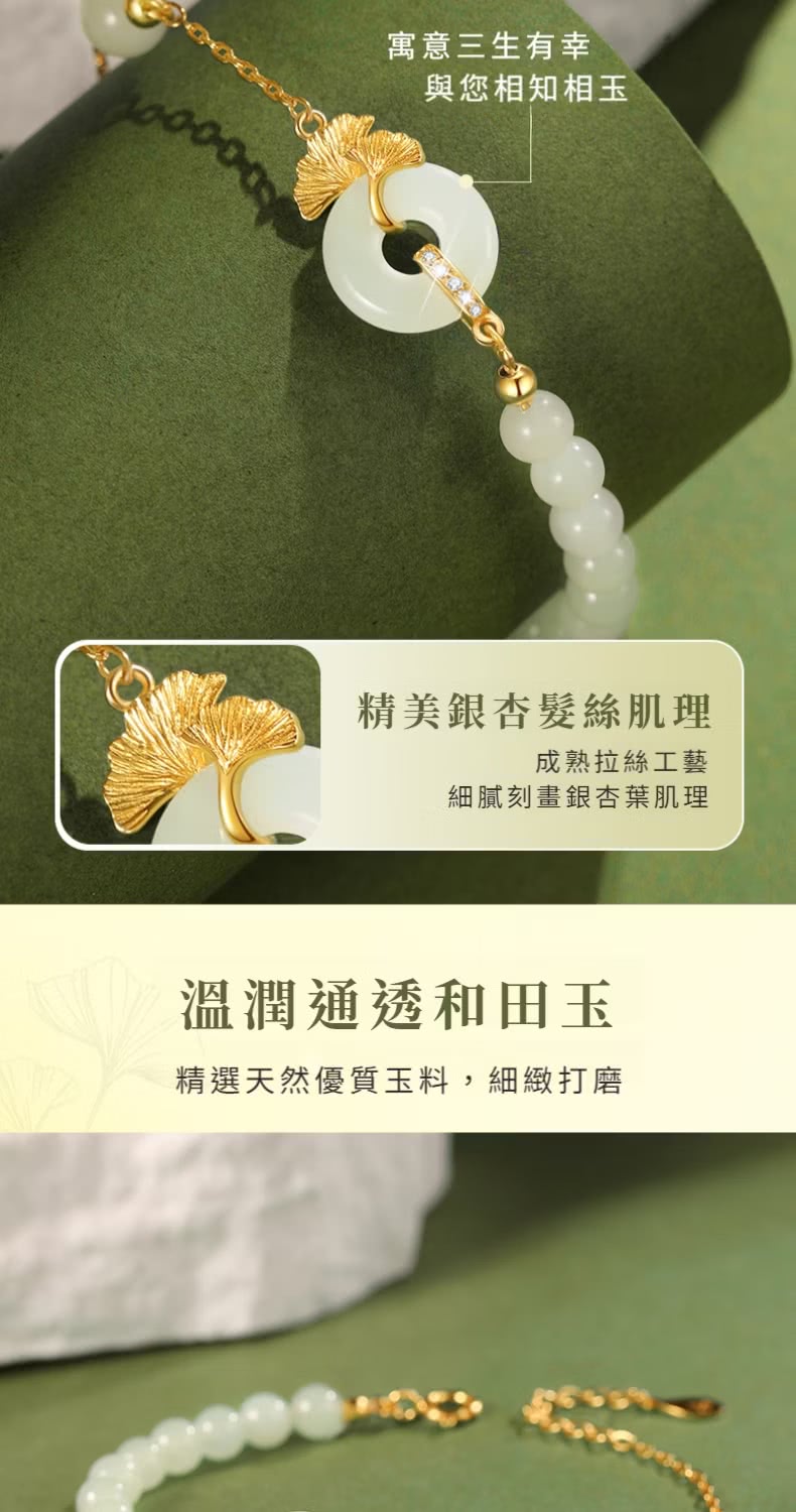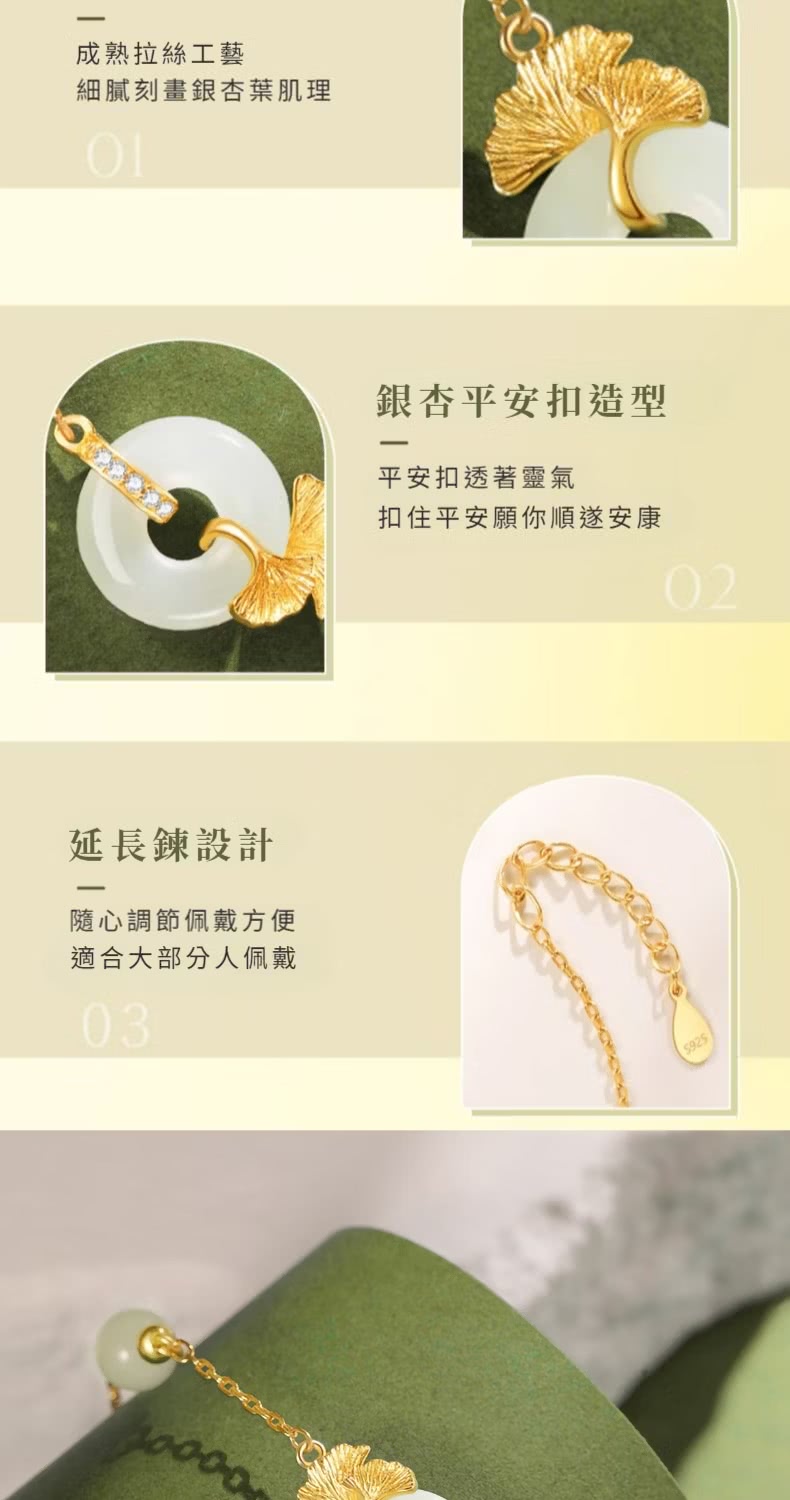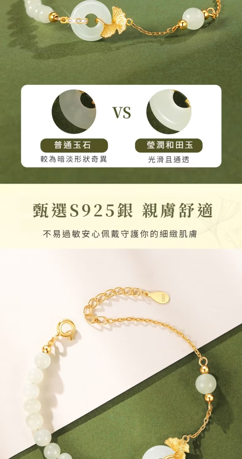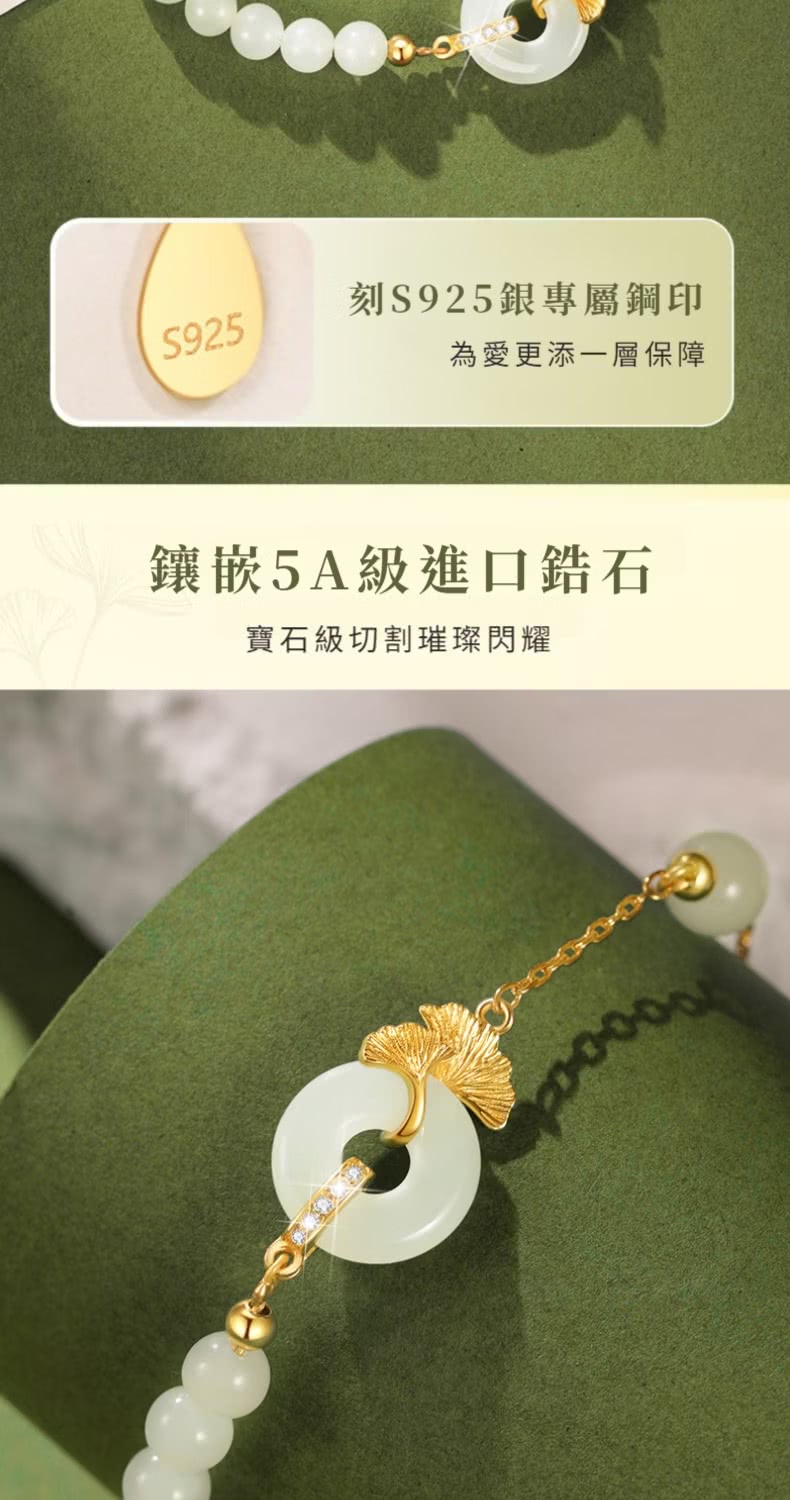 【好運在手】和其有杏 平安扣925銀銀杏手鍊(和田玉石 開運手鏈 手環 手珠 佛珠 和闐玉)