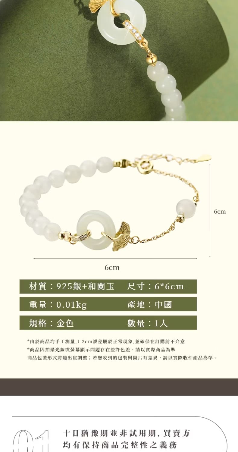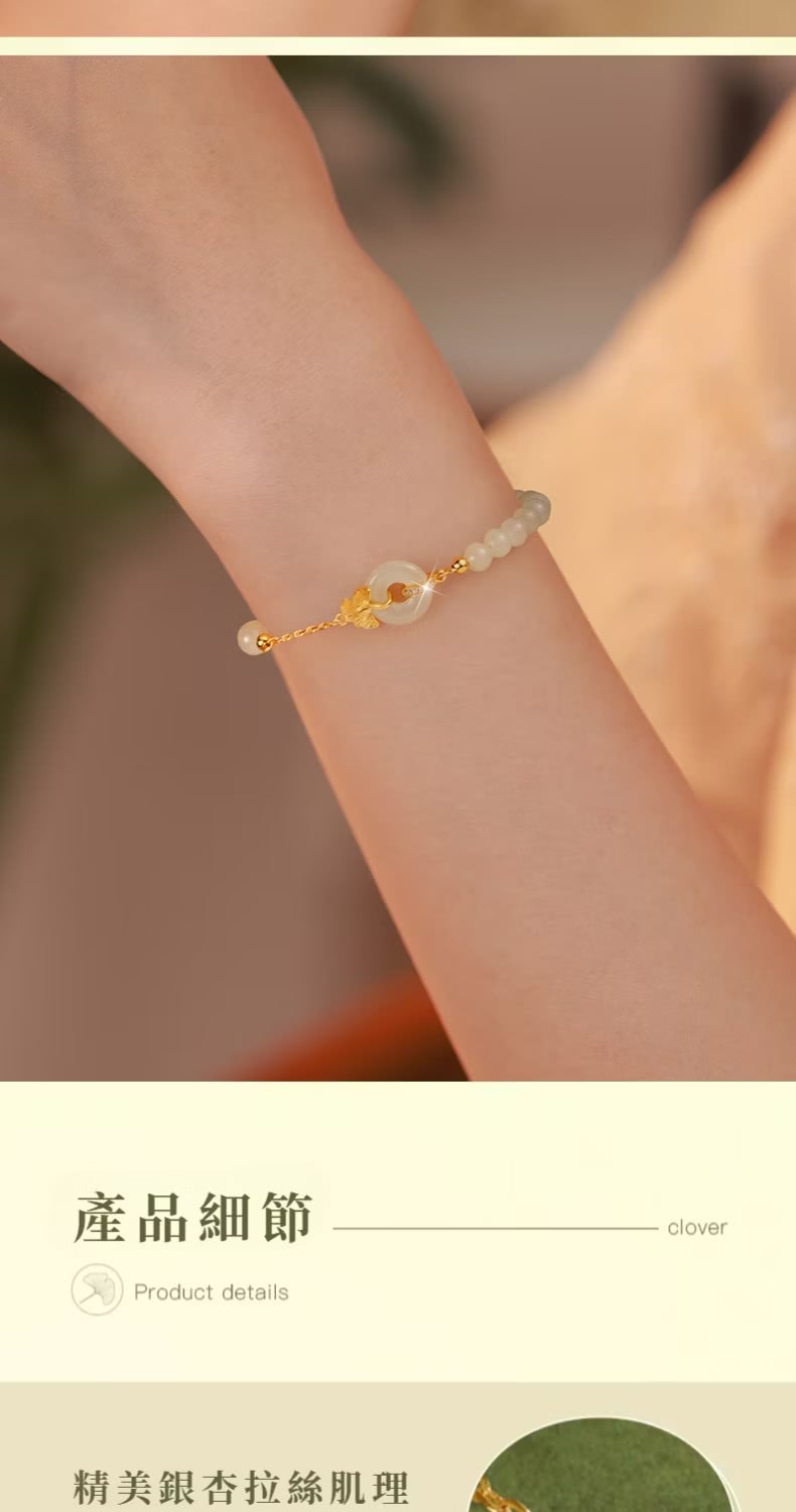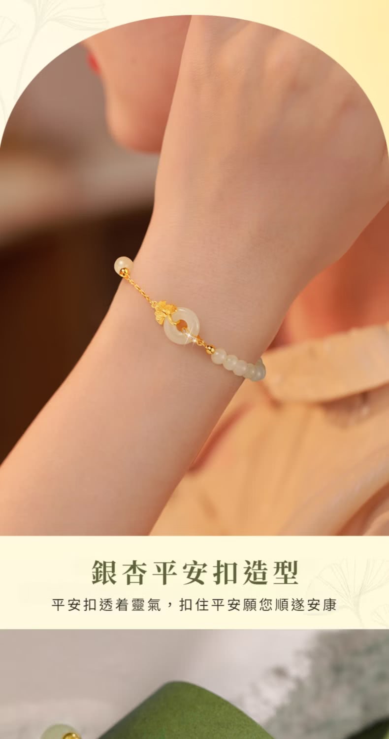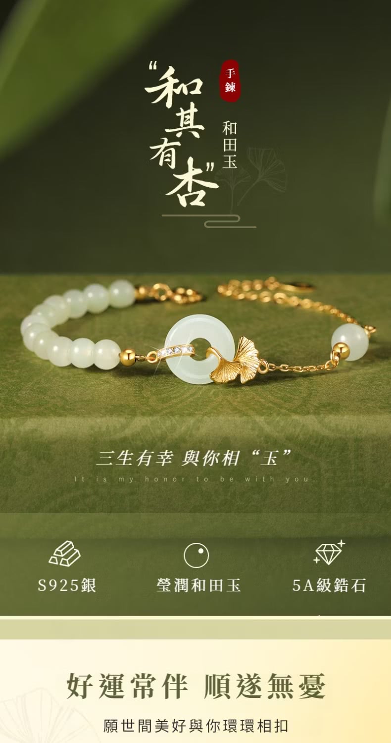 【好運在手】和其有杏 平安扣925銀銀杏手鍊(和田玉石 開運手鏈 手環 手珠 佛珠 和闐玉)