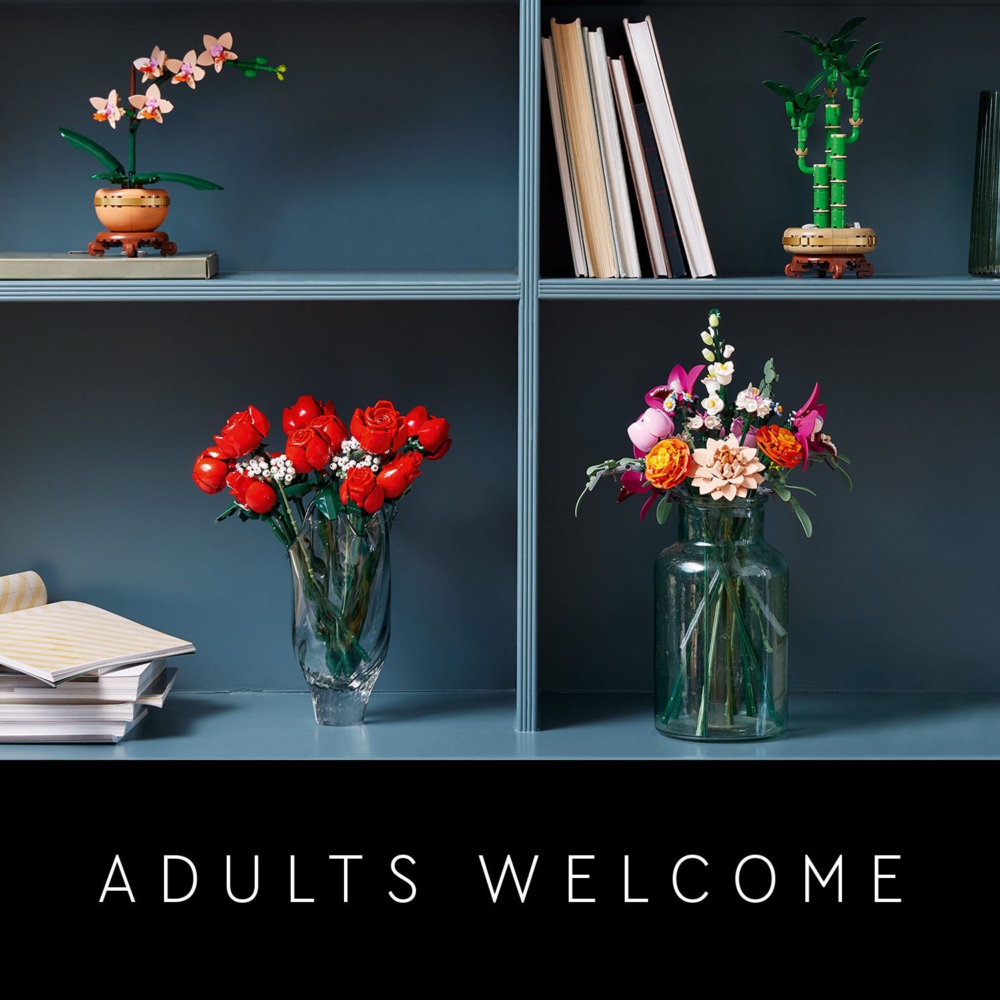 • 拼砌更多花朵-這款積木組成的花束可搭配其他樂高® 花藝系列盒組(另售)