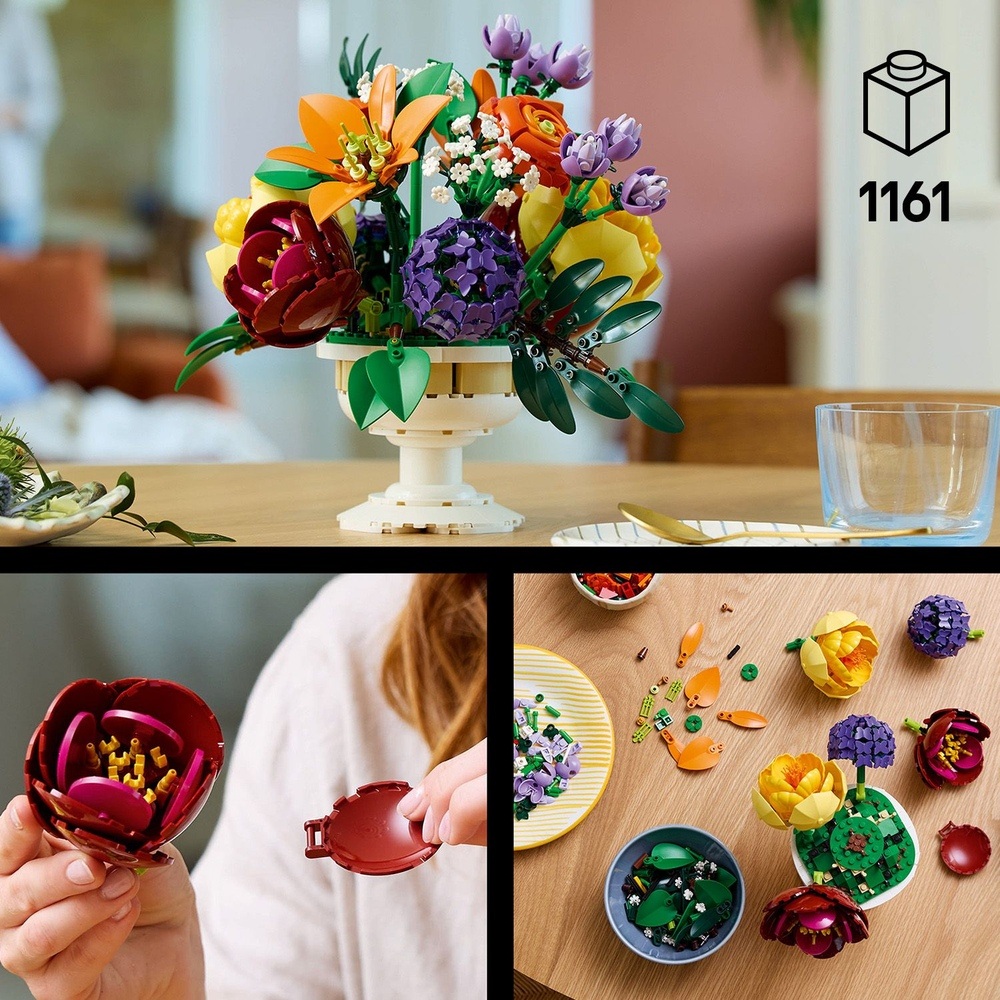 • 拼砌更多花朵-這款積木組成的花束可搭配其他樂高® 花藝系列盒組(另售)